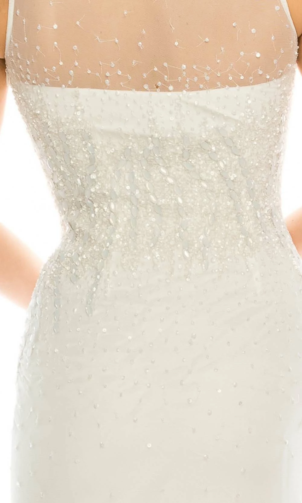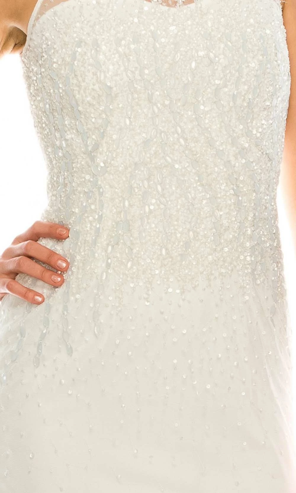 Make magic in this fantastic dress from Adrianna Papell 091892190. This ivory breathtaking mesh features a divine illusion neckline, heavily intricate beading of the bodice, and sheath skirt. Turn yourself into a timeless beautiful goddess in this creation by Adrianna Papell.