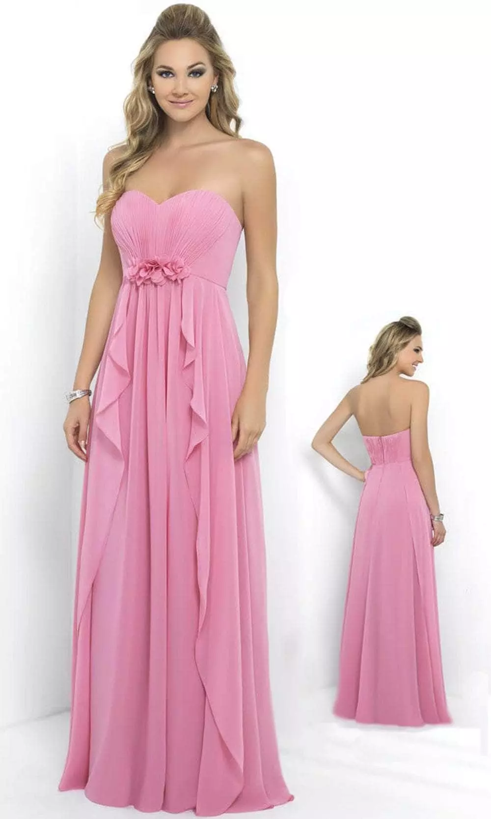 Dress to impress on your next formal even in this simple but captivating dress by Alexia Designs 182L. Shows off in a strapless, sweetheart with pleated and ruched bodice ornate with floral details. The chiffon skirt flourishes a floor-length hem in an A-line silhouette. This Alexia Designs dress is a sure winner. This Alexia Designs 182L is the longer version of style number 4182. Wherever you go, whatever you wear, leave a long-lasting impression on the gathering with May Queenβs collection of dresses for bridal, bridesmaid, prom, homecoming, cocktail, formal, semi-formal, and many more themes. Model is wearing Pink and Blue colors.
