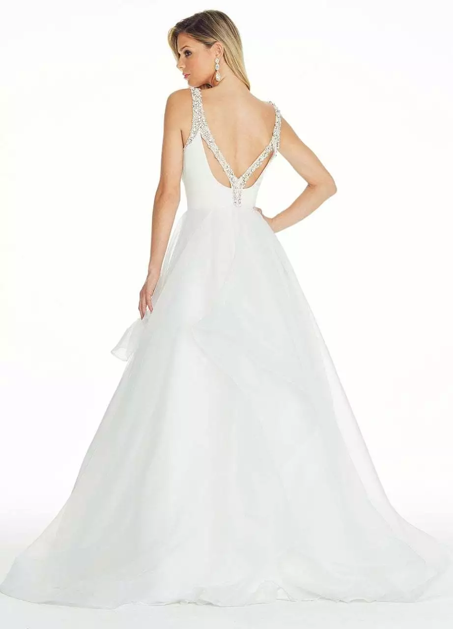 Make an entrance in this beaded silk organza bridal dress by Ashley Lauren 1292. The illusion V-Neckline bustier is adorned with pearl and rhinestone beading that continues to the back. The A-Line skirt is made from layers of silk organza. This Ashley Lauren evening gown will not let anyone miss your grand entrance.