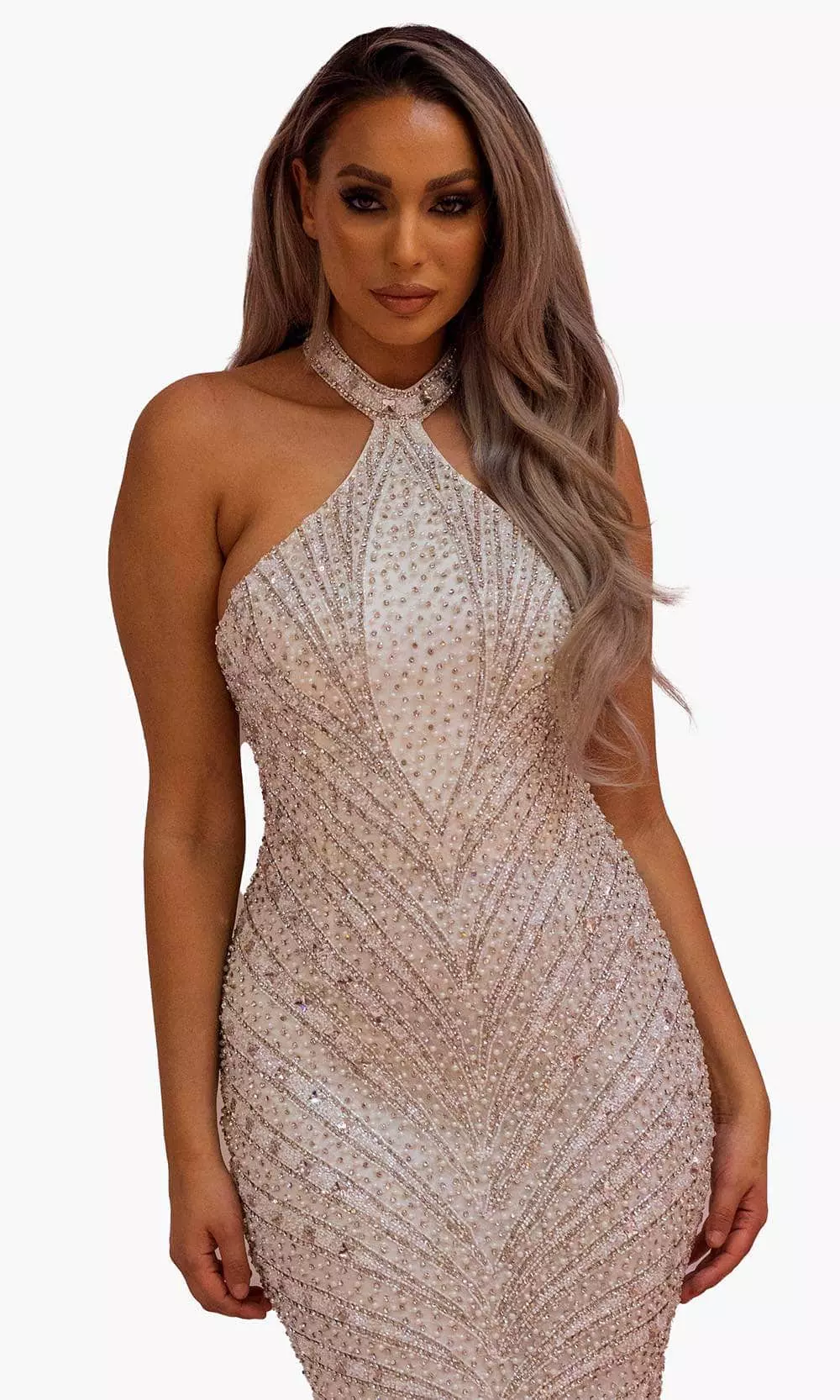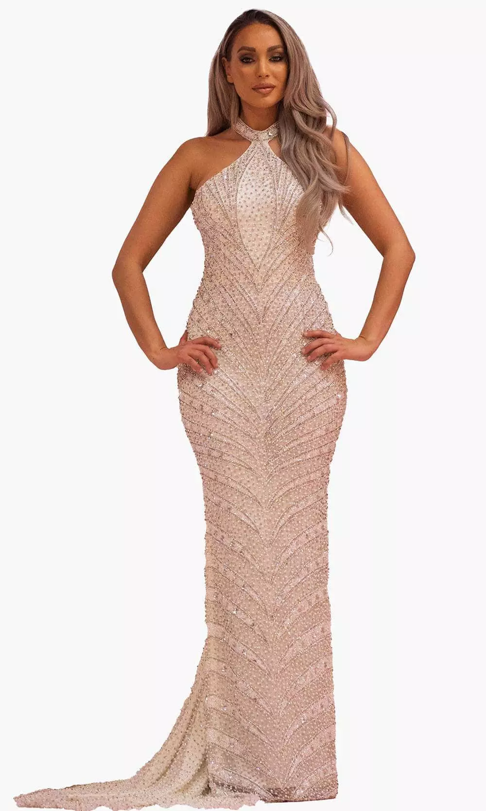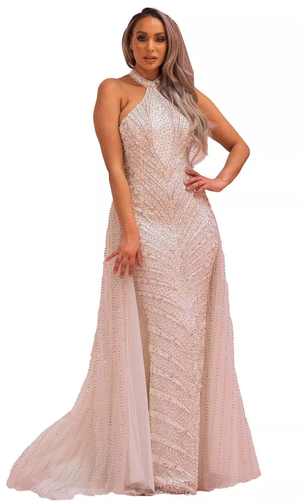 Be the center of attention in this glamorous Chic and Hollandย BR1990 creation.ย A high halter neckline crowns the fitted bodice ornamented with intricate displays of beads and rhinestones. The full-length sheath skirt is matched with an A-line overskirt for a more alluring look and it gorgeously finishes in a sweep train. Make his gaze linger on you as you walk in this mesmerizing Chic and Holland masterpiece. Buy the trendiest and chicest Chic and Holland Haute Couture evening gowns, luxury evening dresses, chic Couture prom dresses, Haute Couture cocktail dresses and Haute Couture evening dresses to make a grand entry at special events. Model is wearing the Ivory color.