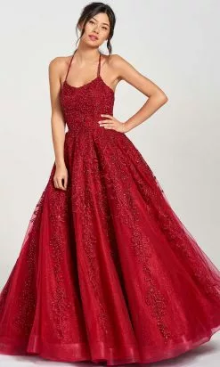 Glow with an upscale style in this Colette for Mon Cheri CL12221 creation. Embellished with an intricate beaded lace spectacle, this gown flatters with a scoop neckline and spaghetti straps. Ornamented with a strappy lace up back and adorned with glimmering beadwork, the A-line skirt cascades into a sweep of train. Grace every ballroom like a stunning vision in this Colette for Mon Cheri masterpiece. Whether your style is modern trendy or timeless classic, Mon Cheri will clothe with poise, elegance and grace for your momentous occasion. Models are wearing the Crimson and Spruce colors. Find more prom dresses.