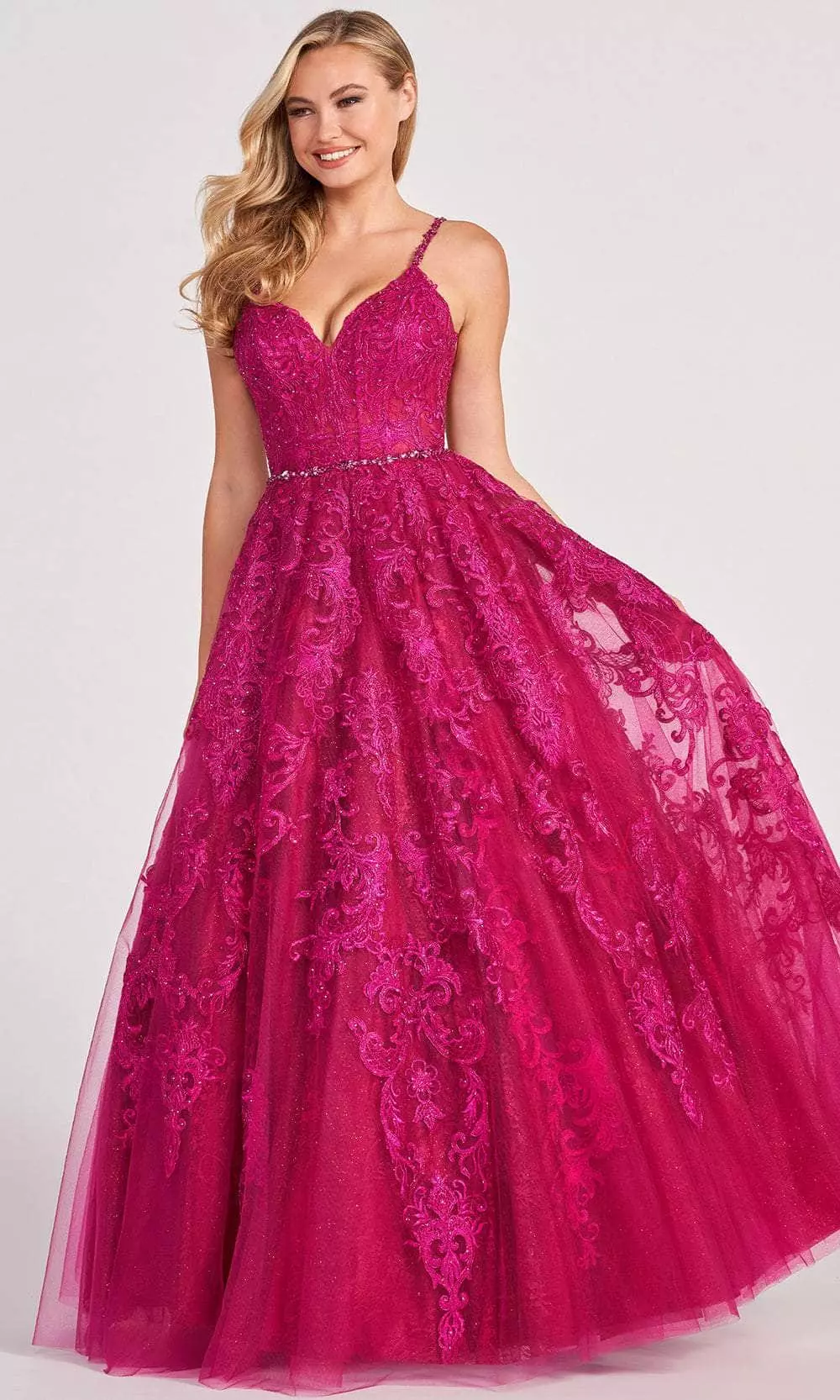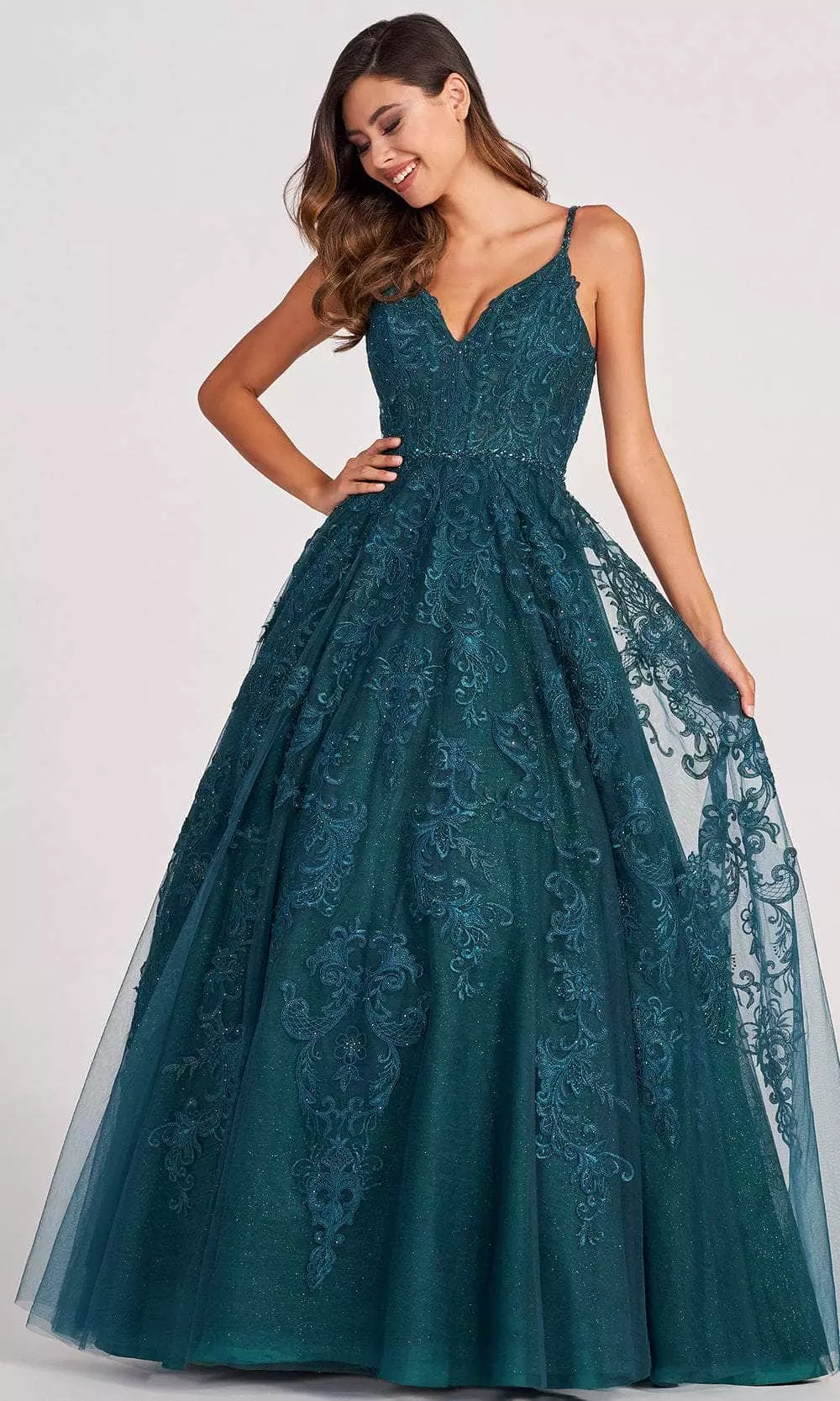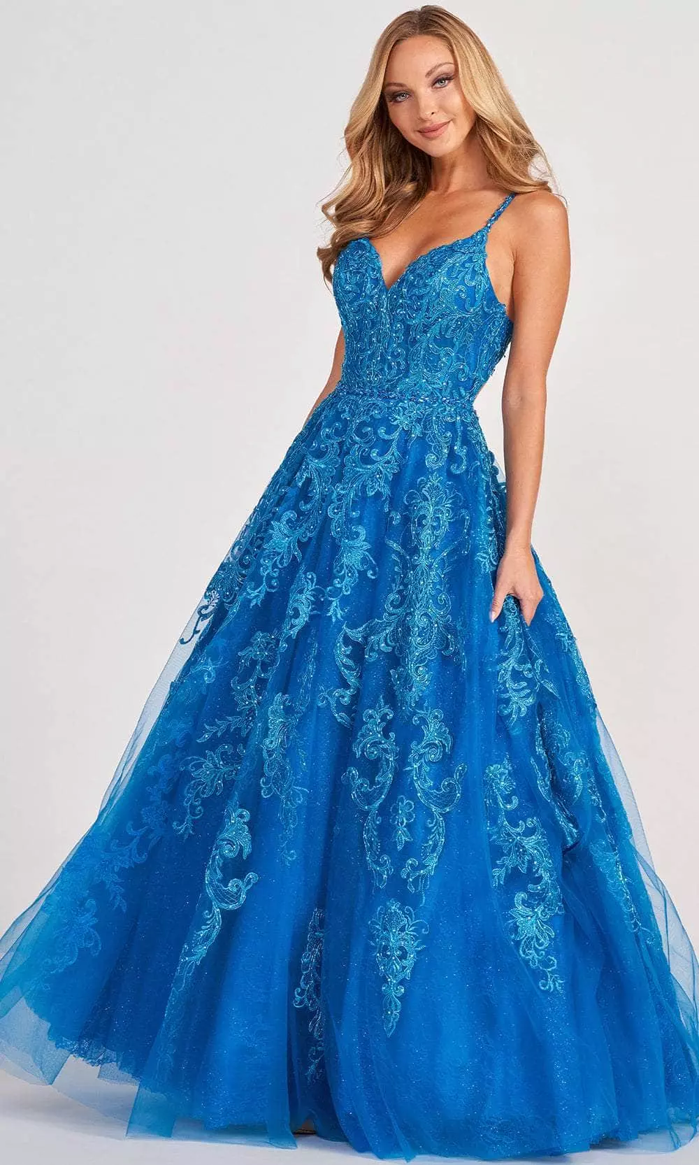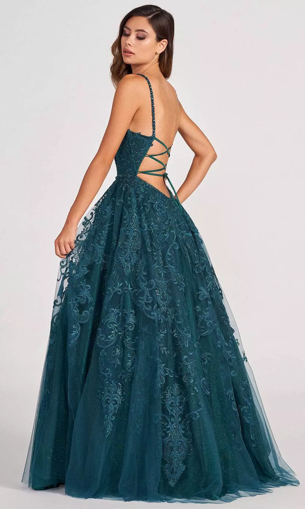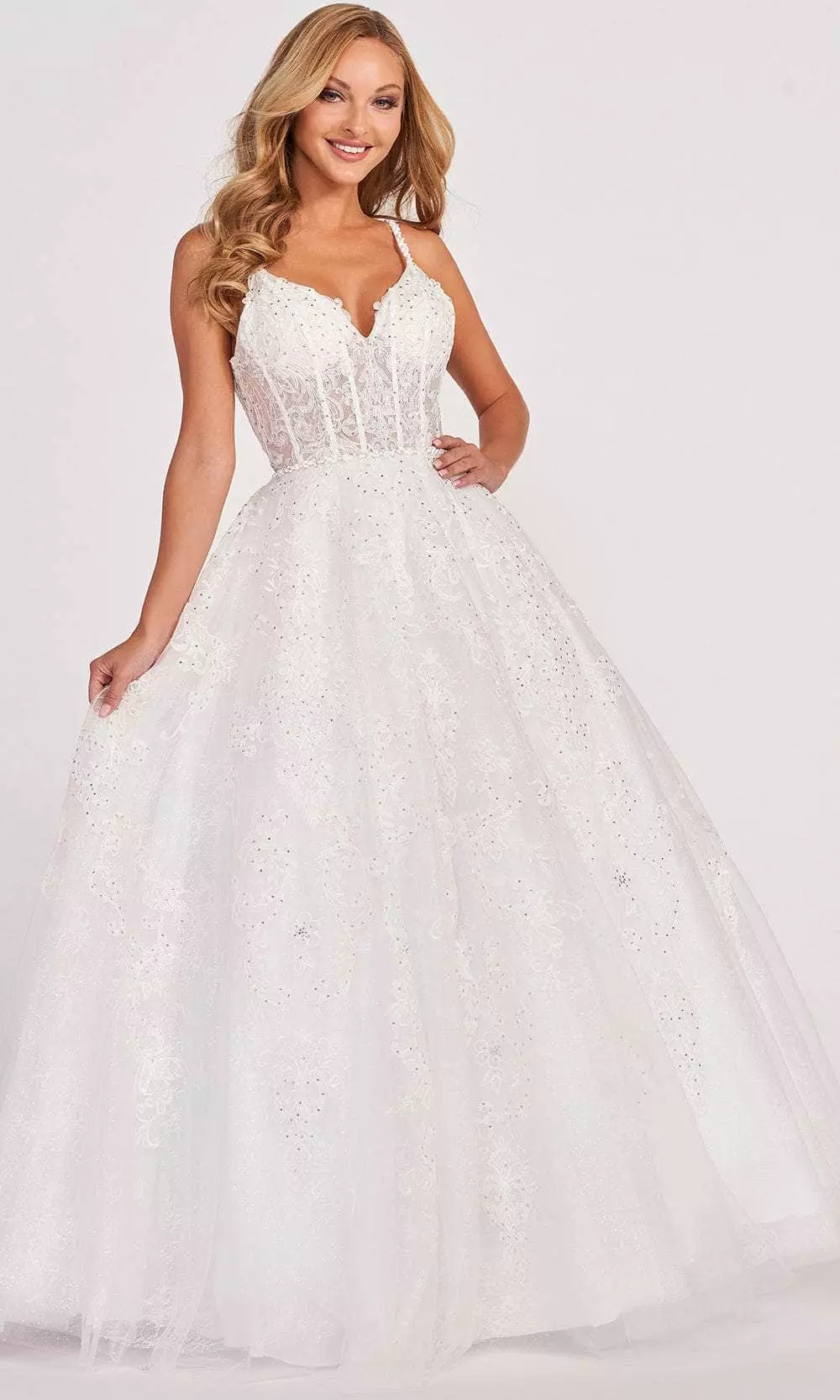 Get that glamorous and elegant feel wearing this gown by Colette for Mon Cheri CL2026. This gown enchants with a sleeveless bodice and it is crowned with a sweetheart neckline. Gorgeously festooned with lace appliques rendered in beads and sequin embellishments. The skirt parades in a ballgown silhouette; it also reveals an open back with a lace-up tie design; both of these features are featured. In this breathtaking Colette for Mon Cheri CL2026 creation, you shall convey the utmost in refined elegance. Models are wearing Diamond, White, Black, Fuchsia, Spurce, and Turquoise colors.