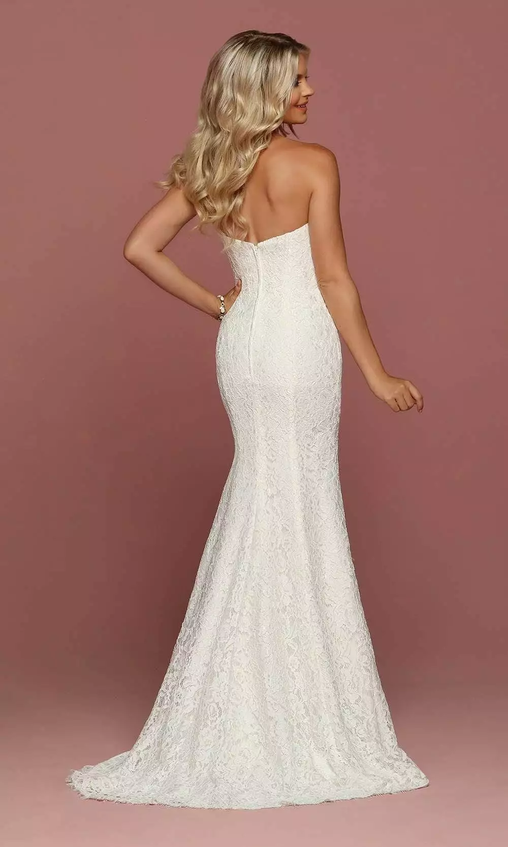 You are oh so fashionable in a stylish gown from Da Vinci Bridal 50491. Look Simple but elegant in a sheath, to fit and flare wedding dress that features a minimalist strapless, sweetheart neckline bodice open back with zipper. All detailed in a sophisticated lace detailing finishing in a flawless Chapel Train. Da Vinci Bridal is making it well-suited for both petite and curvy brides who want a chic, classic look.