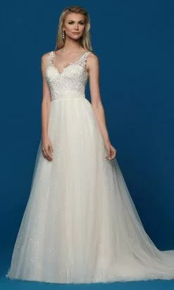 Glamour up for your special day in this Da Vinci Bridal 50643 creation. Intricately rendered with embroidered details on a sheer bodice, this stunner flatters with a v-neckline and a sweetheart lining. Embellished with a sheer scoop back and pleat-ornate waist, the skirt trails to reveal an A-line silhouette with a train. This is your time to shine in this Da Vinci Bridal masterpiece.
