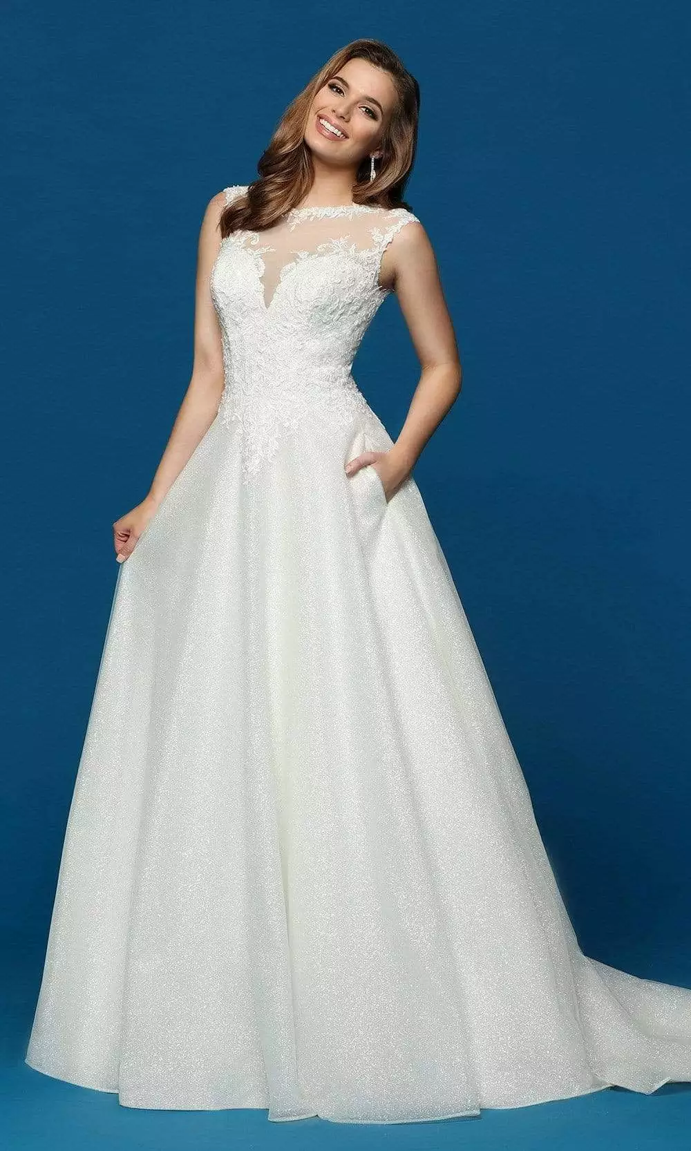 | Details: | Lace Appliques, Cap Sleeves, Pockets, Cutout Back, Court Train |