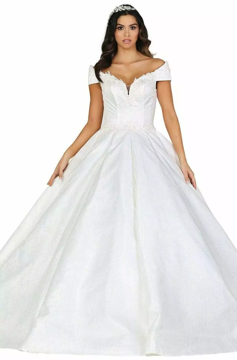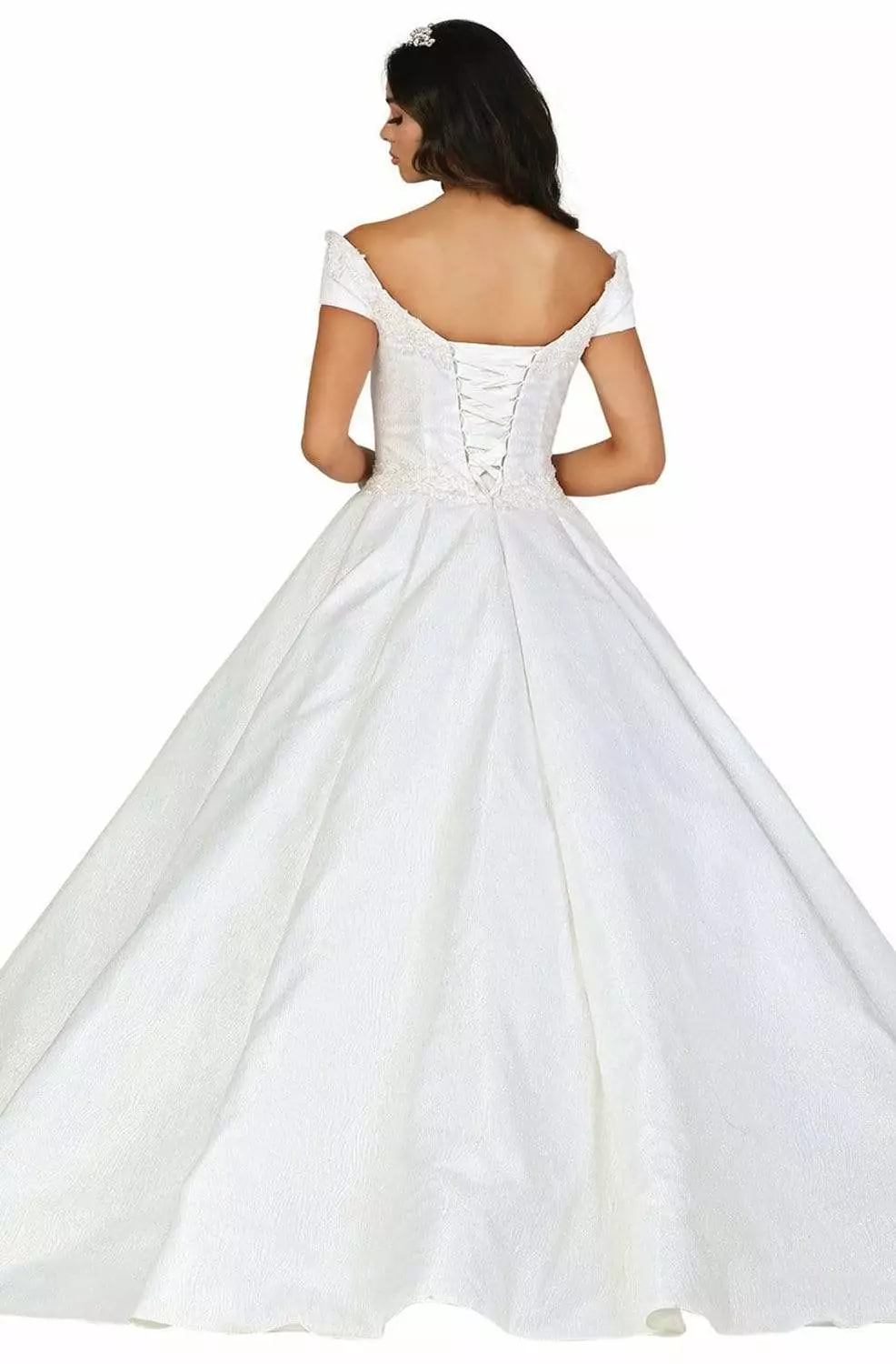 Mark this day as one of the best as you show up in this Dancing Queen 107 bridal dress. Soft embellishments beautify the off-shoulder neckline and waist as tailoring seams ensure the perfect fitting. Fabulous pleats adorn the ballgown skirt as it graces to a full length hemline. The back is mid-open secured with lace up closure. This Dancing Queen design is ideal for the bride who wants to exude classic sophistication while living out her modern-day fairytale.