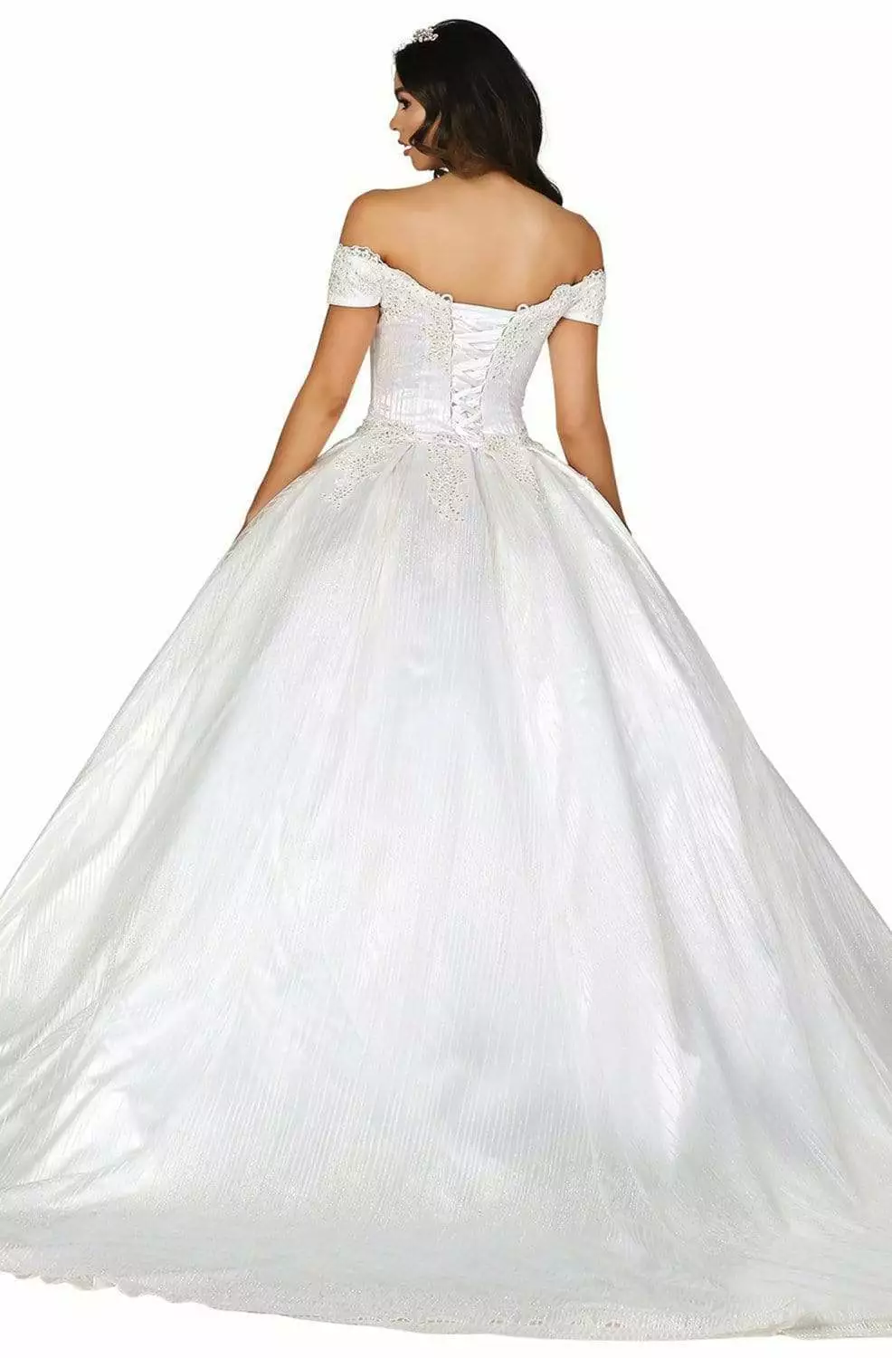 Make your fairytale dream come true as you share vows with your prince wearing this glamorous Dancing Queen 147 masterpiece. Heat stone embellishments design the neckline and waist, crowned with a scalloped off-shoulder neckline. The ballgown skirt highlights lovely pleats that fall to a full length hemline, completed with a chapel train. Be ready to capture the spirit of that romantic evening in this Dancing Queen creation.