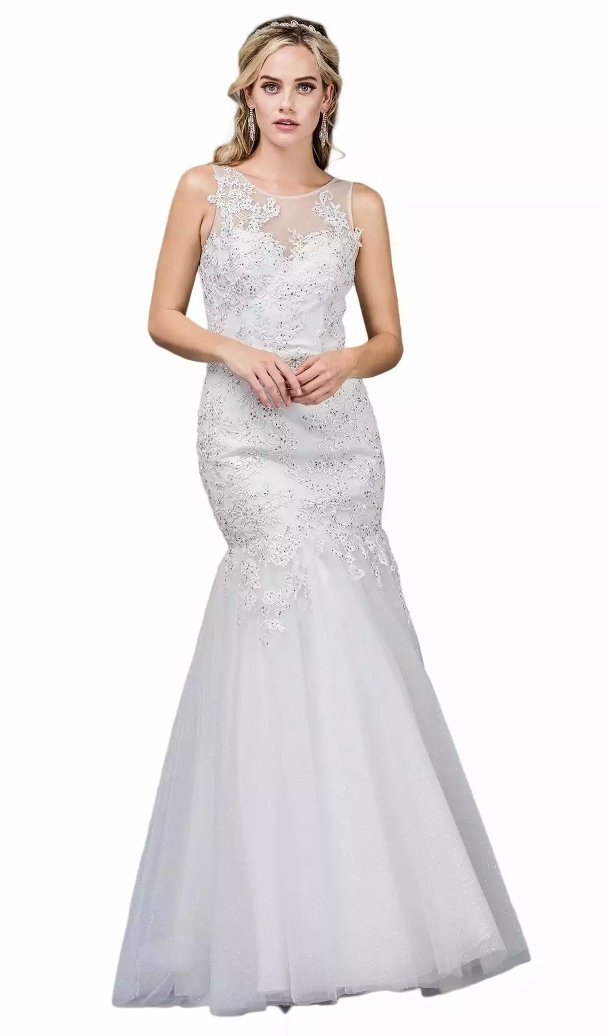Bring on that commanding beauty with this gown from Dancing Queen 0076. Showcases a sleeveless, bateau neckline with sweetheart lined bodice ornate with beaded lace. The back has a zipper closure and the skirt forms a trumpet silhouette and runs in full length hem. Look impeccably polished as you sweep them of their feet in this dazzling Dancing Queen masterpiece.