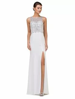 | Details: | Illusion Bodice, Jewels, Bra Cups, Cutout Illusion Back, Back Zipper Closure, Clasp, Thigh High Slit, Full Length Hem |