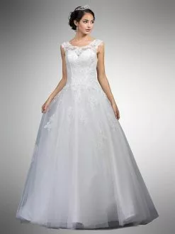 | Details: | Cap sleeves, Sheer fabric, Sweetheart lining, Fitted bodice, Ballgown skirt, Back zipper, Sheer fabric, Embellished lace |