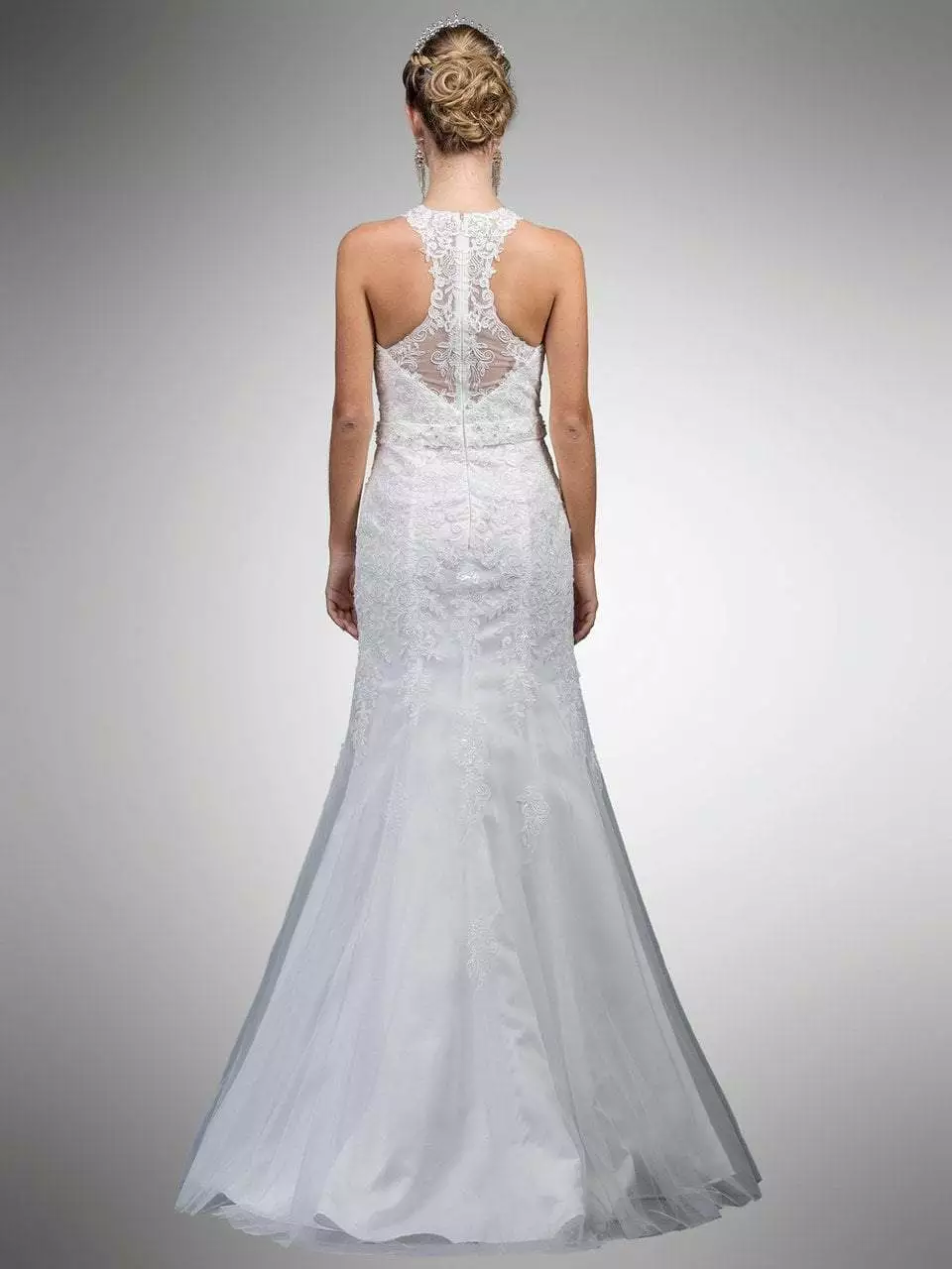 | Details: | Sleeveless, Beaded lace, Sweetheart lining, Belt, Fitted bodice, Racerback, Back zipper, Sheer back, Mermaid skirt, Sheer overlay, Train |