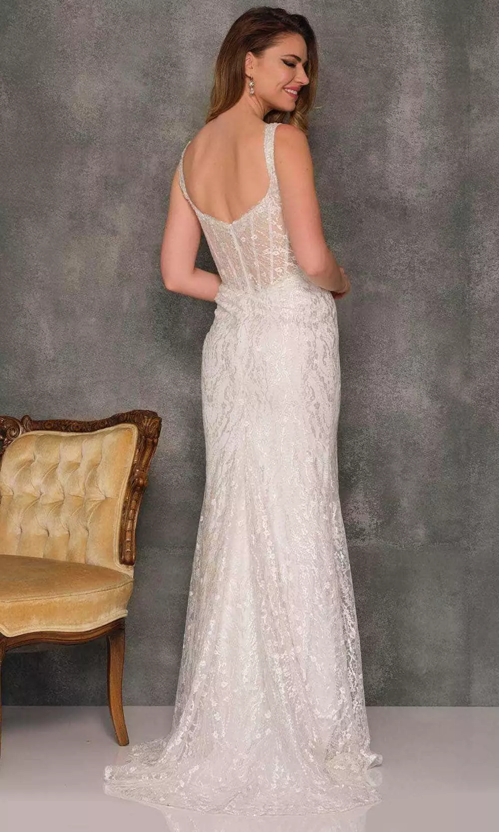 This beautiful Dave & Johnny A10454 masterpiece will let you exude the vibrant personality you have. This elegant Bridal gown features a scoop neckline along with illusion bodice that are embellished with gorgeous lace appliqués. The back is secured with a concealed zipper with a exposed corset boning structure which is great define your curves. This fit-and-flare is finished with a sweep train for an extra touch of refinement. In this one-of-a-kind design by Dave & Johnny Bridal Gown, you’ll turn heads on that special event! Model is wearing the Ivory color.