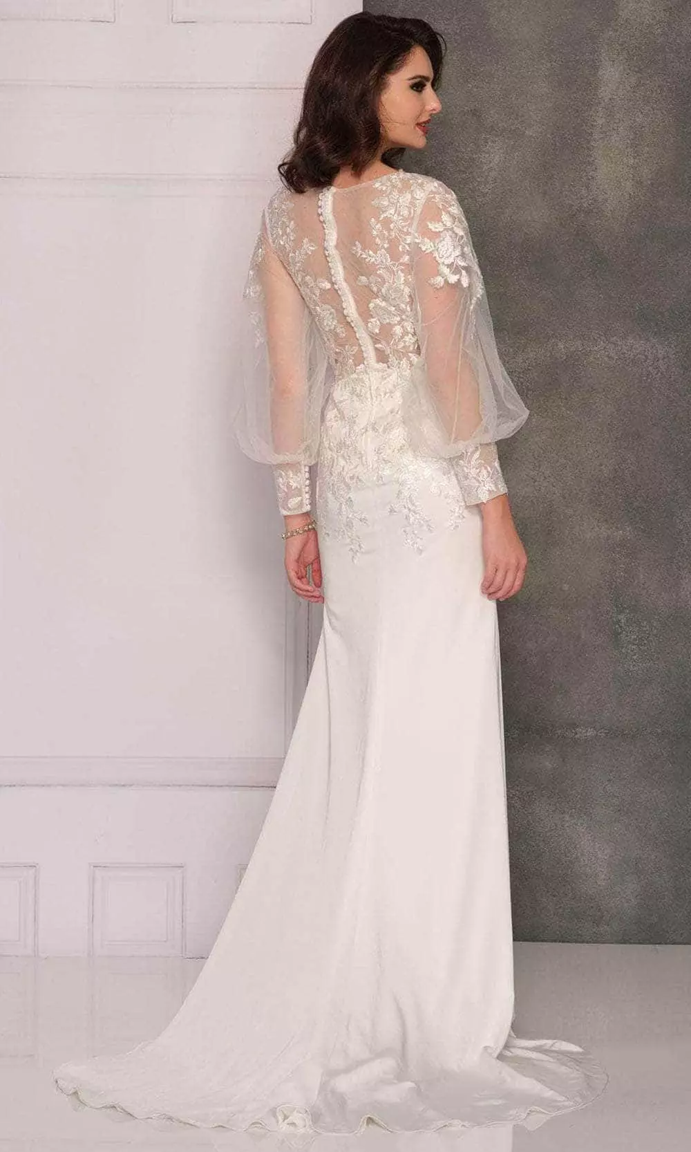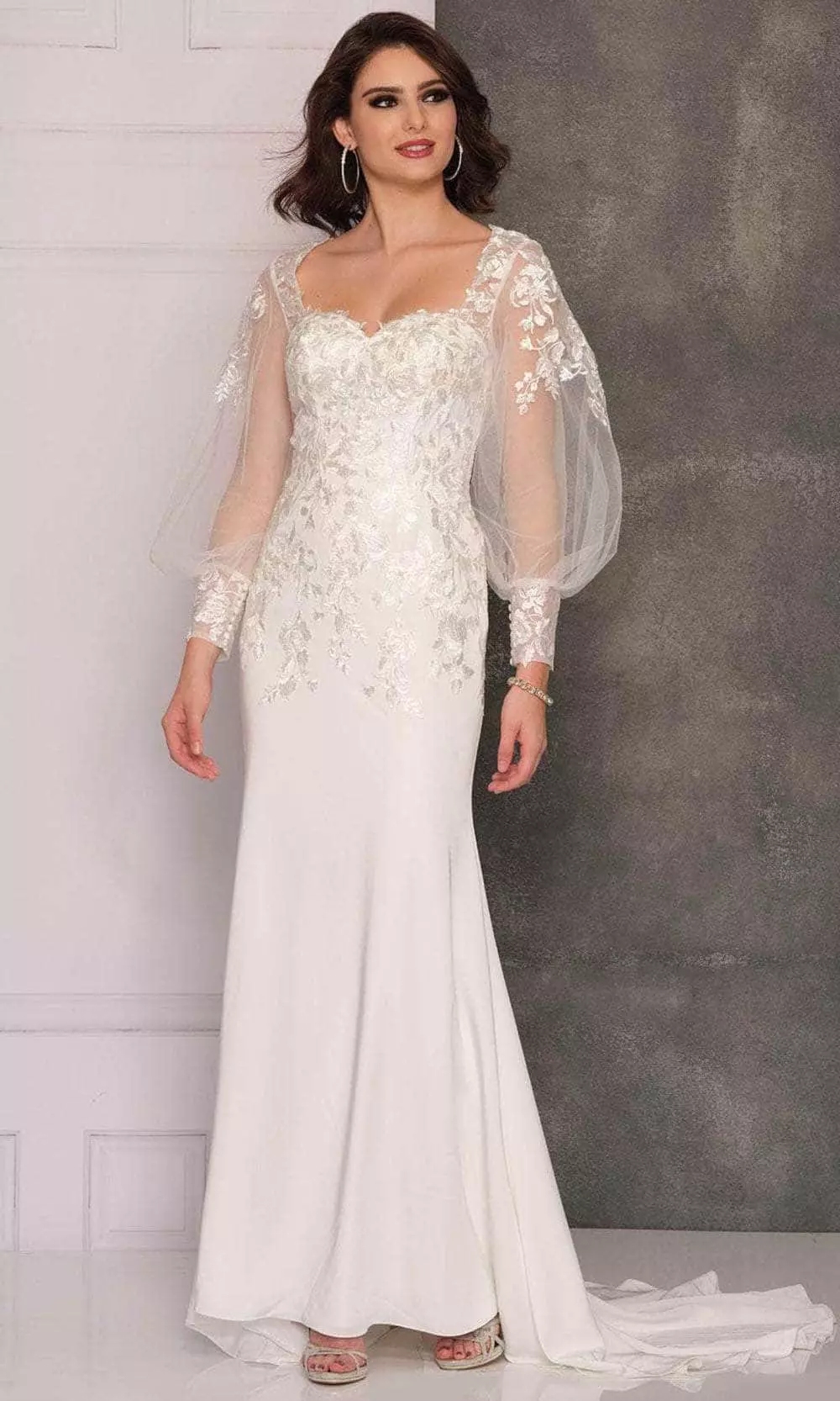 Channel red carpet with glamour wearing this creation by Dave & Johnny A10492. This sumptuous design features a figure-flattering silhouette that highlights a beautiful lace ambroideries that looks absolutely stunning. The bodice flaunts a sweetheart nekcline, with long bishop sleeves in sheer fabric exposing your lovely arms and is paired at the back in sheer style. The skirt glams in sheath silhouette and finishes in a dramatic chapel train. Shine like a diamond in this Dave & Johnny masterpiece, and make your moment memorable. Model is wearing the Ivory color.
