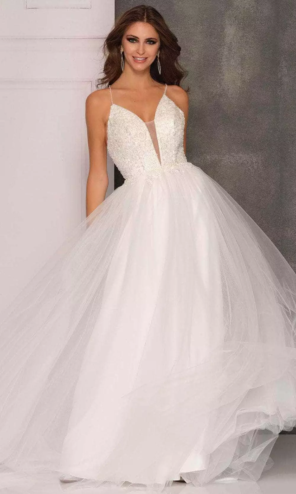 Glide into that spectacular black-tie event like an ethereal vision as you flaunt this gorgeous Dave & Johnny A10497 creation. A stunning combination of hand embroidered lace and floral accents adorn this fitted bodice. Featuring a deep V-neckline supported by thin straps that is doubly crisscrossed at the back reavealing an open style. A secret zipper in the back of the dress keeps it in place and gives it a sleek appearance while the skirt displays layers of tulle resulting in a semi ballgown silhouette. Be an emblem of perfection in this Dave & Johnny masterpiece. Model is wearing the Ivory color.