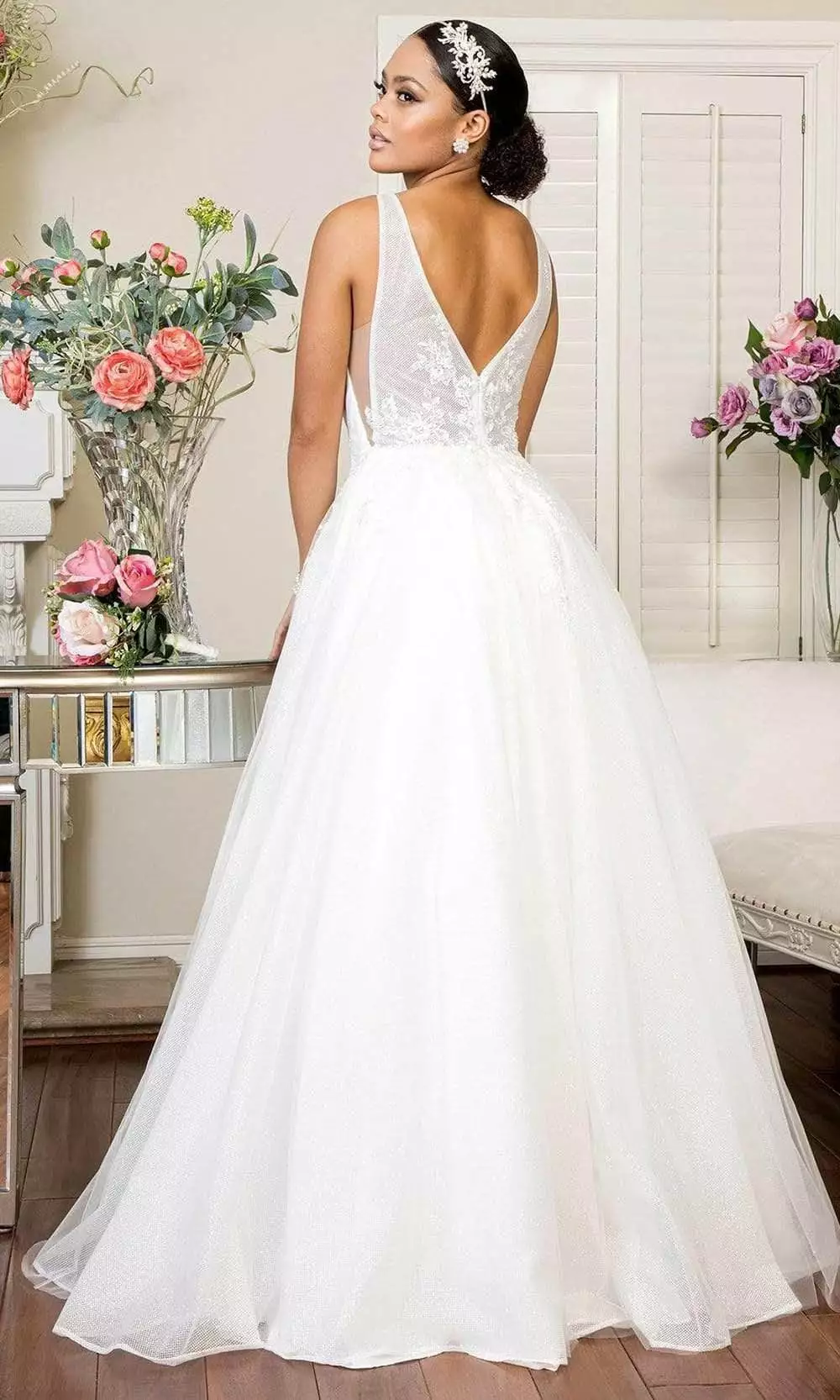 | Details: | Applique, Embroidery, Glitter, V-Open Back, Back Zipper Closure, Sweep Train |