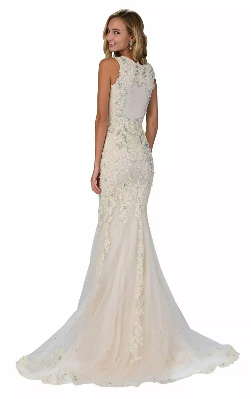 Dare to show off your style in a fashionable evening dress by Elizabeth K GL1344. The fitted outfit is highly fashioned with beaded appliques that are very dazzling and feminine. This tulle long gown offers a high scoop neckline and a mermaid silhouette skirt. Make this Elizabeth K ensemble part of your collection today.