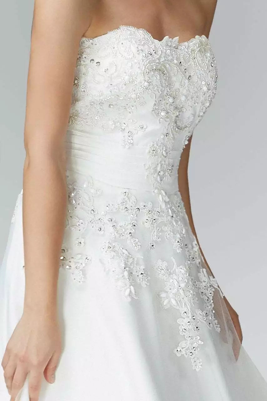| Details: | Strapless, Bead Embellished, Ruched Waist, Floor Length, Mid-Open Back, Lace Up Back, Sweep Train |