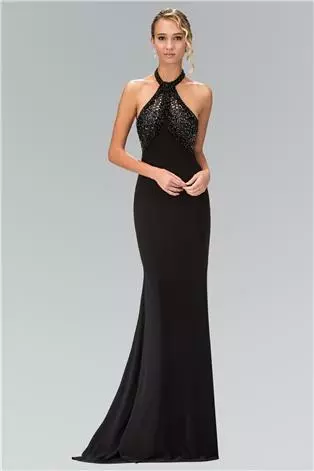 Flatter your figure with this eccentric evening dress by Elizabeth K GL1330. The halter neck dress boasts a sequin embellished bodice, sheer open back, and a sheath silhouette skirt. This Elizabeth K creation will absolutely make you feel special!