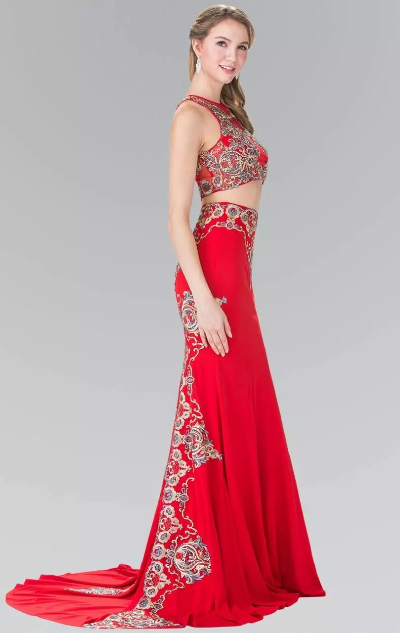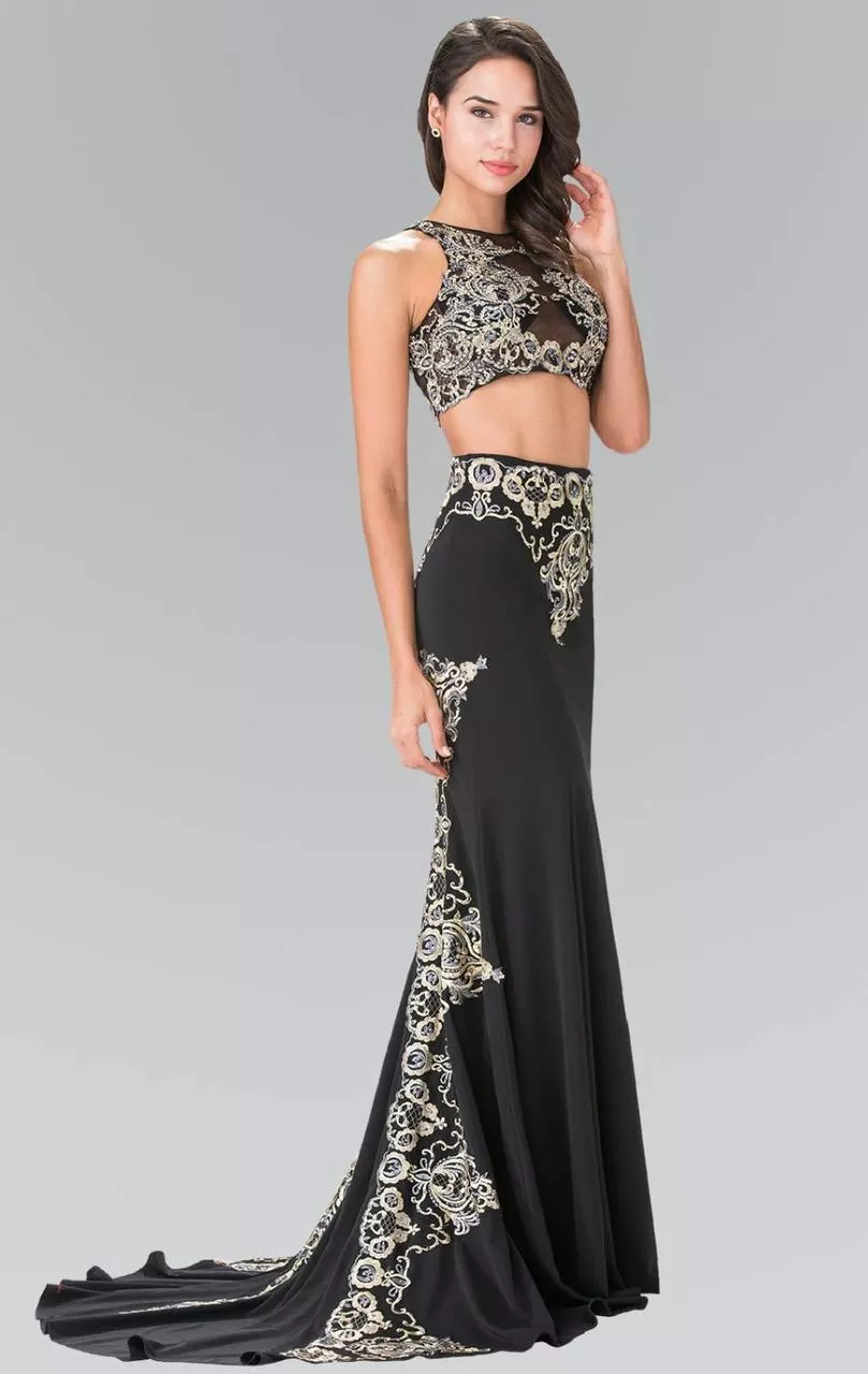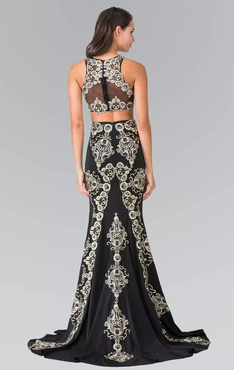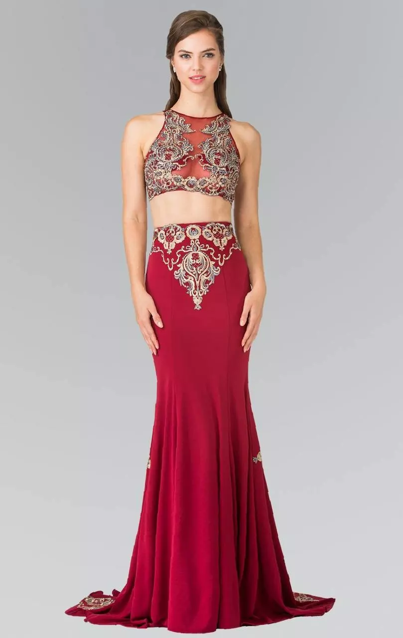 | Details: | Two-piece, Sleeveless, High neck, Trumpet skirt, Beaded, Embellished |