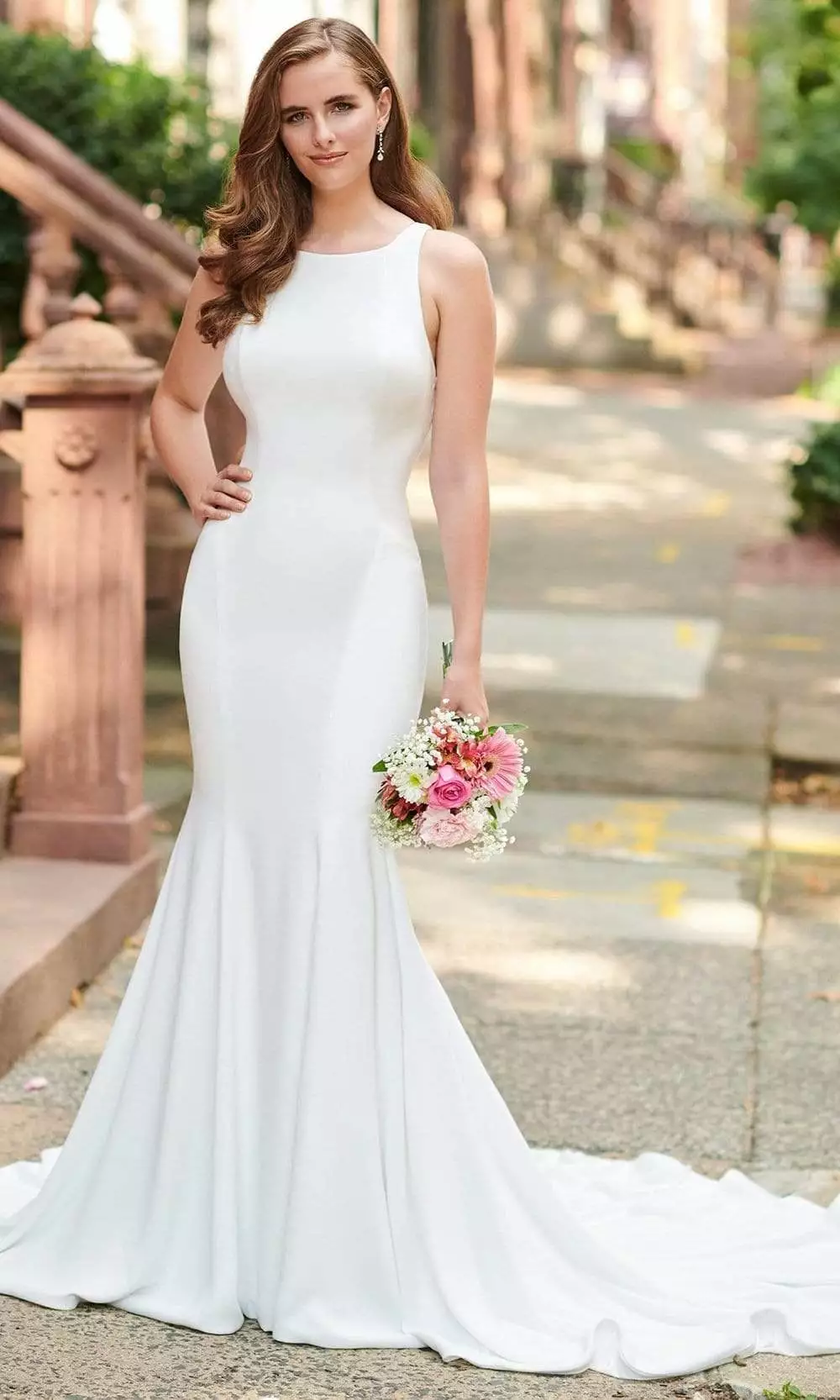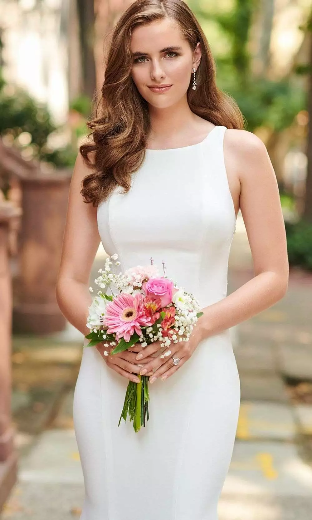 | Details: | Sleeveless, Princess Seamed Bodice, Sheer Illusion Back, Fabric Buttons, Stretch Lining, Chapel Train |