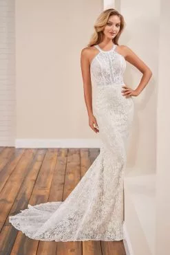 Look fabulous for your event in this alluring Enchanting by Mon Cheri 221158 bridal dress. This fitted embroidered bodice highlights a halter neckline supported by back keyhole with back buttons closure. This also displays a trumpet silhouette gracing down to its floor length. Steal everyoneโs stares in this fabulous Enchanting by Mon Cheri masterpiece. Model is wearing Diamond White/Nude color.