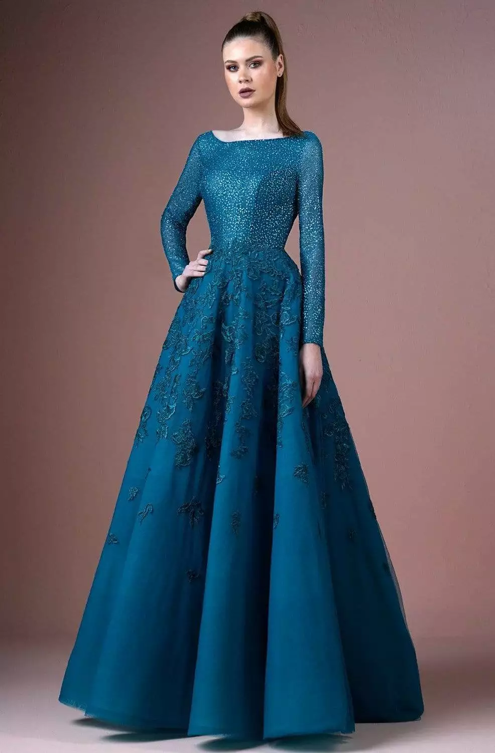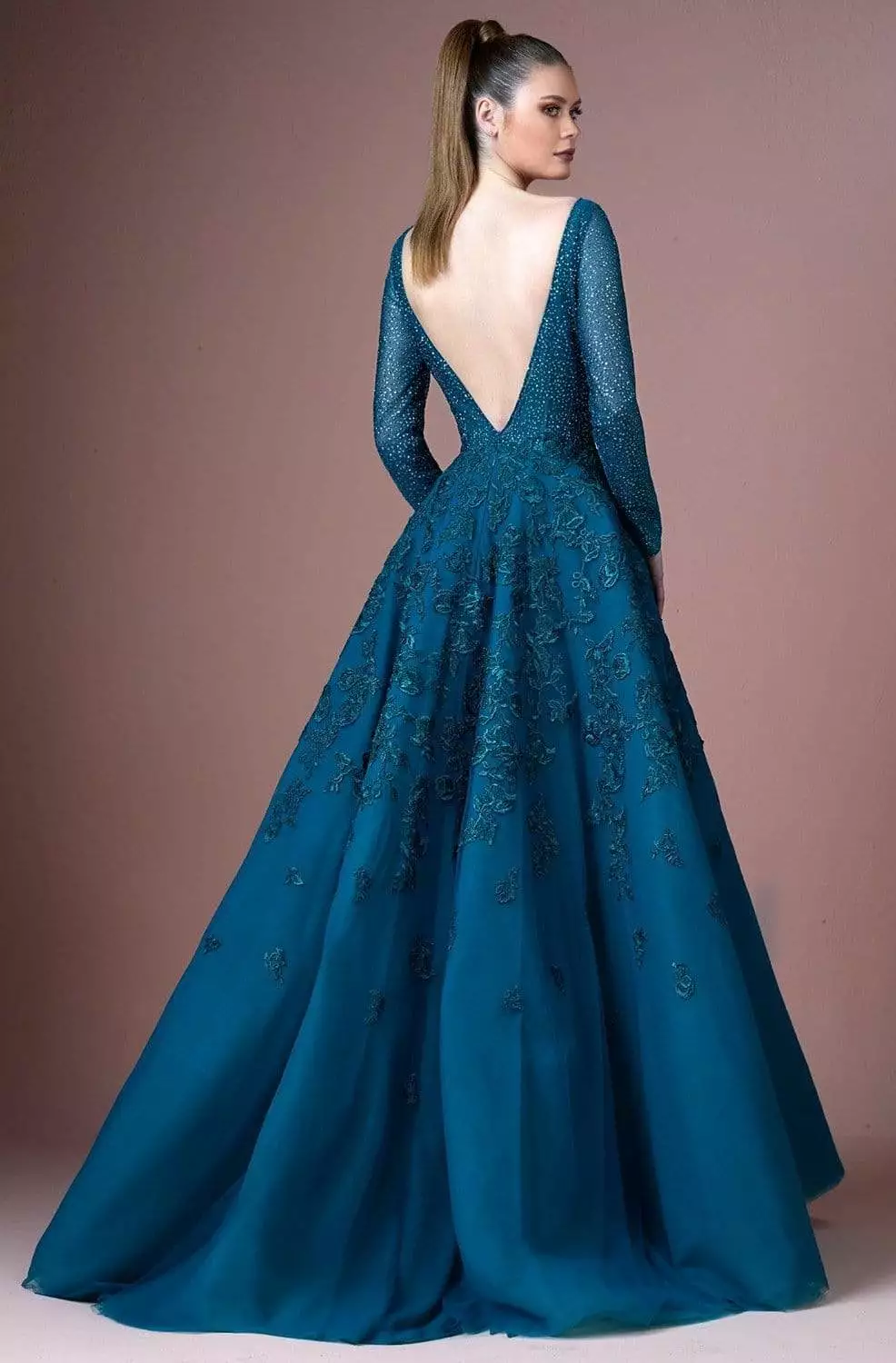 This Gatti Nolli Couture OP-4757 is a charming choice for your next special occasion. This gown graces a bateau neckline with bodice and long sleeves ornate with embellishments. The back is styled with a low V-cut. The ballgown skirt is detailed with elegant lace appliques and finishes in a sweep train. Channel red carpet glamour wearing this Gatti Nolli Couture design.