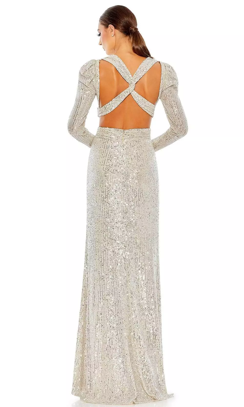 | Details: | Sequined, Fully-Sequined, Long-Sleeves, Open-Back, Back Zipper, High-Slit, Train |