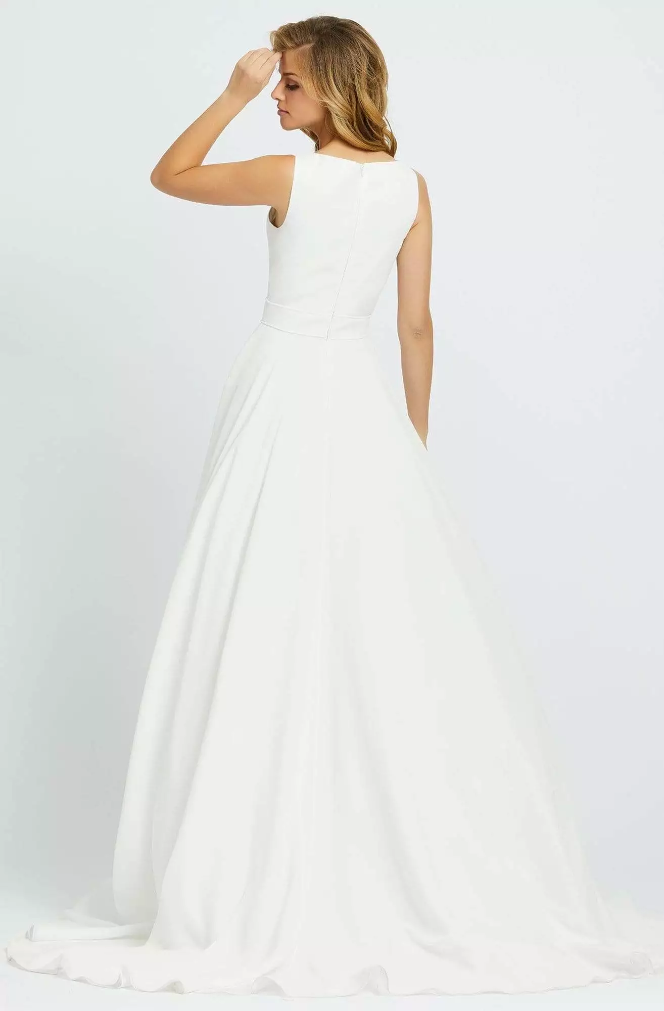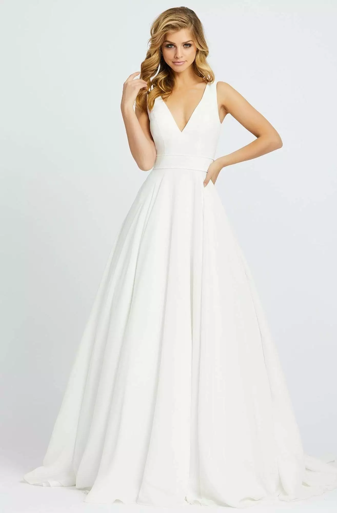 | Details: | Sleeveless, V-neckline, Long A-line dress, Band, Fitted Bodice, Back zipper, Sweep train |