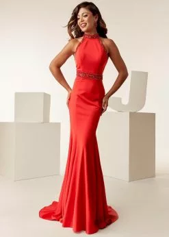 Make heads turn as you showcase sophistication in this stylish evening gown by Jasz Couture 6267. The curve-hugging bodice features a beaded high halter neckline and beaded waistline. The back is defined by its bead embellishment and back cutout. The slim silhouette is figure flattering, hugging your body and accentuating your curves, flaring out at the bottom for an effortless, flowy touch. Truly this dress by Jasz Couture is the definition of chic and classiness.