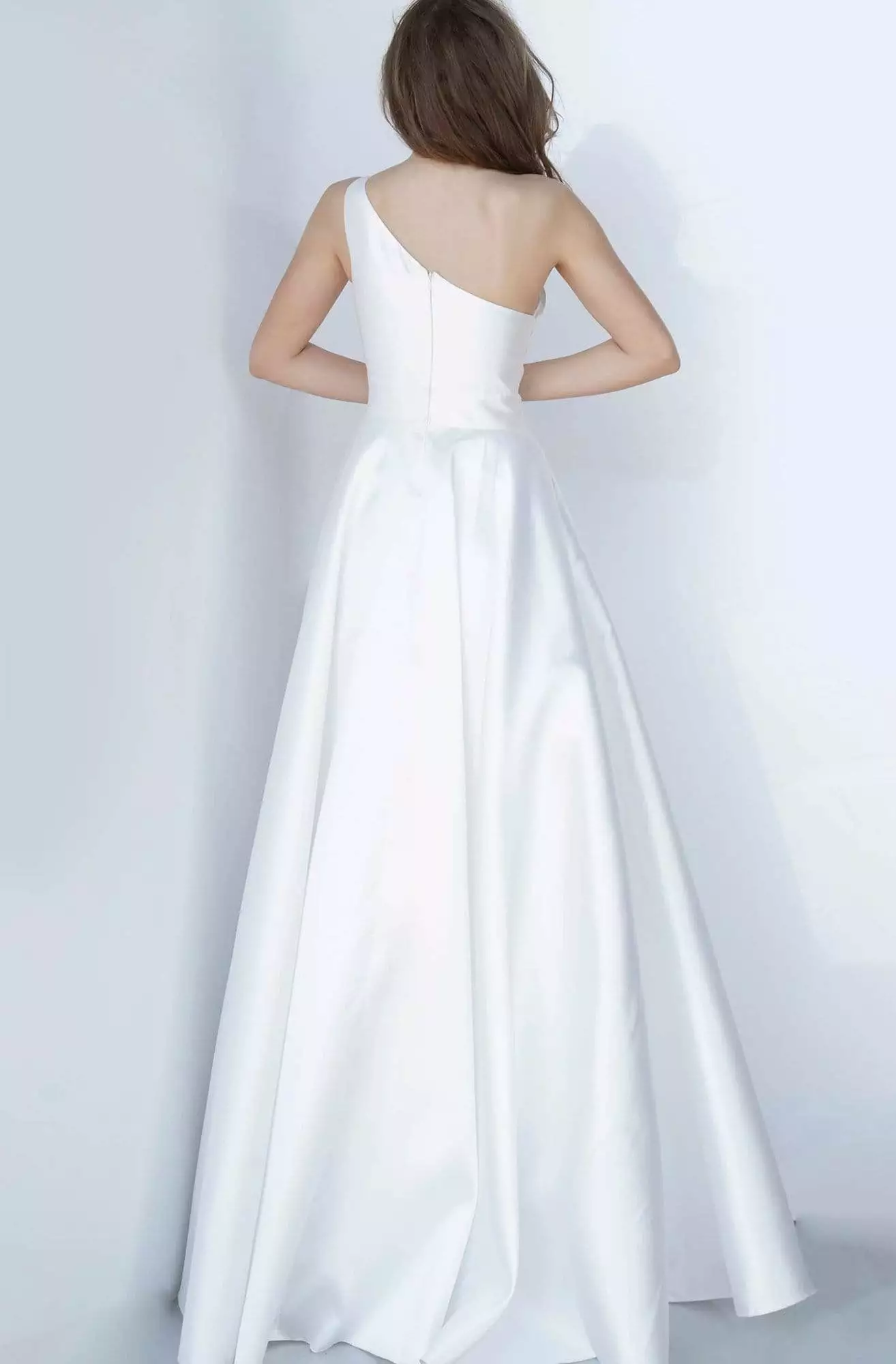 | Details: | Sleeveless, One shoulder, Mikado, Fitted bodice, A-line skirt, Back zipper |