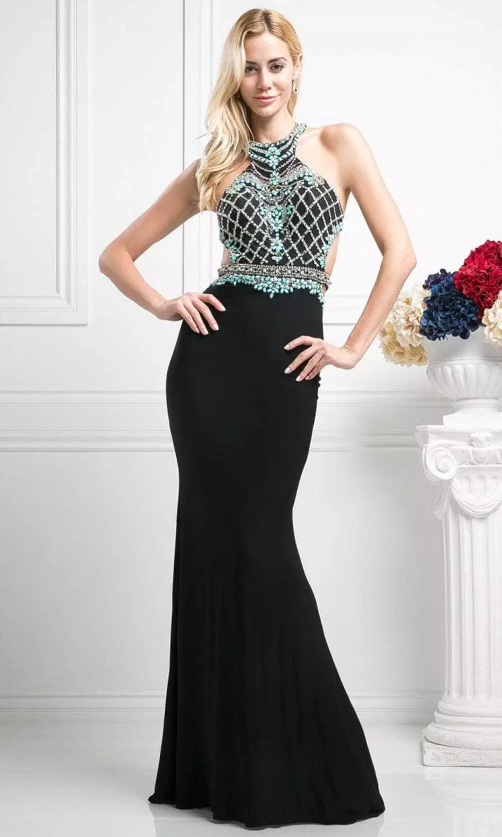 Put your best fashion foot forward in this show-stopping creation from Ladivine CR733! The open back and beaded halter neckline highlight your stunning figure. The skirt has a mermaid silhouette, combined with its beautifully crafted bodice, which is intended to flatter every inch of your lovely body. Do you want to create a fairytale atmosphere at your gala events? This Ladivine CR733 evening gown will take your style to the next level.The model is wearing a Black color.