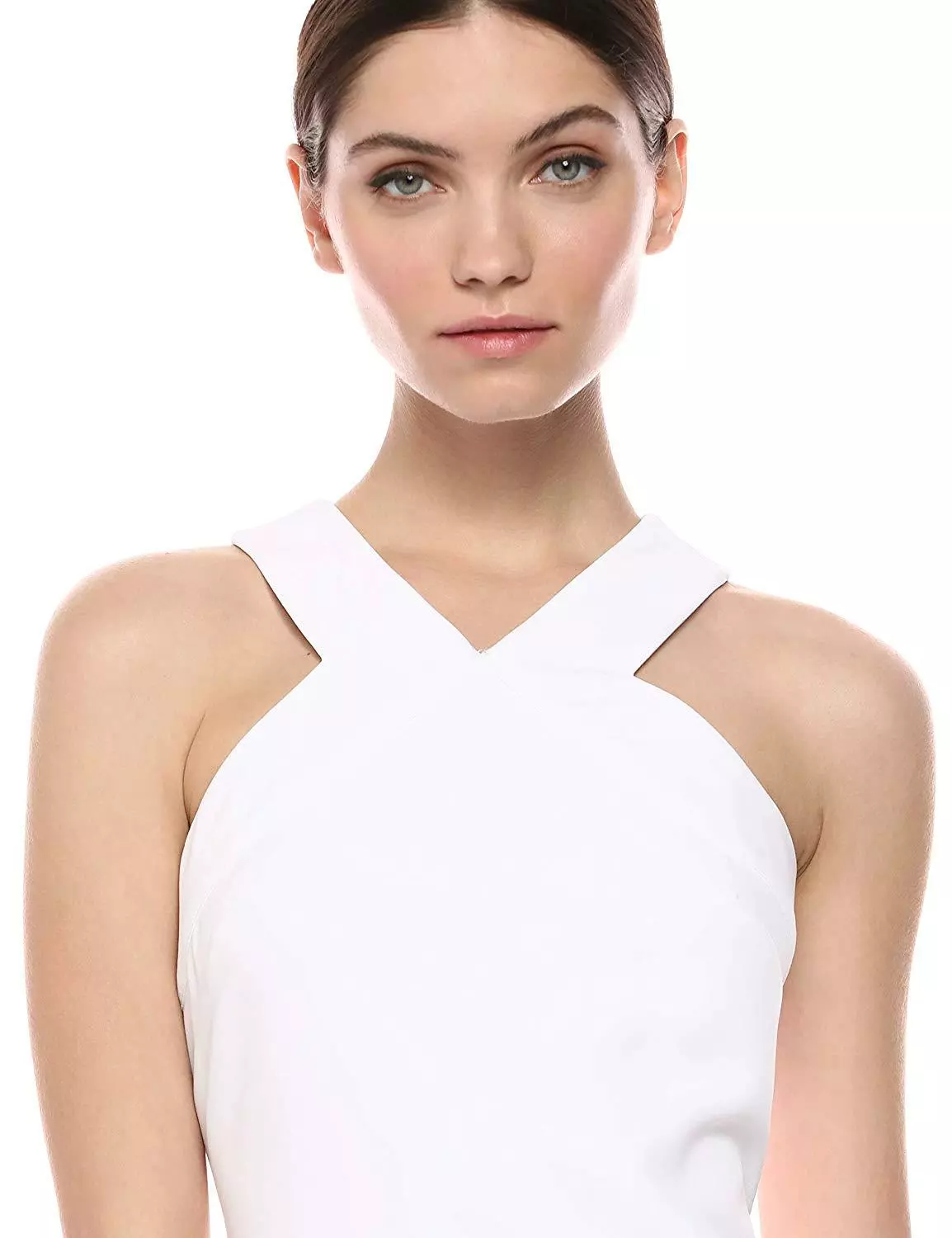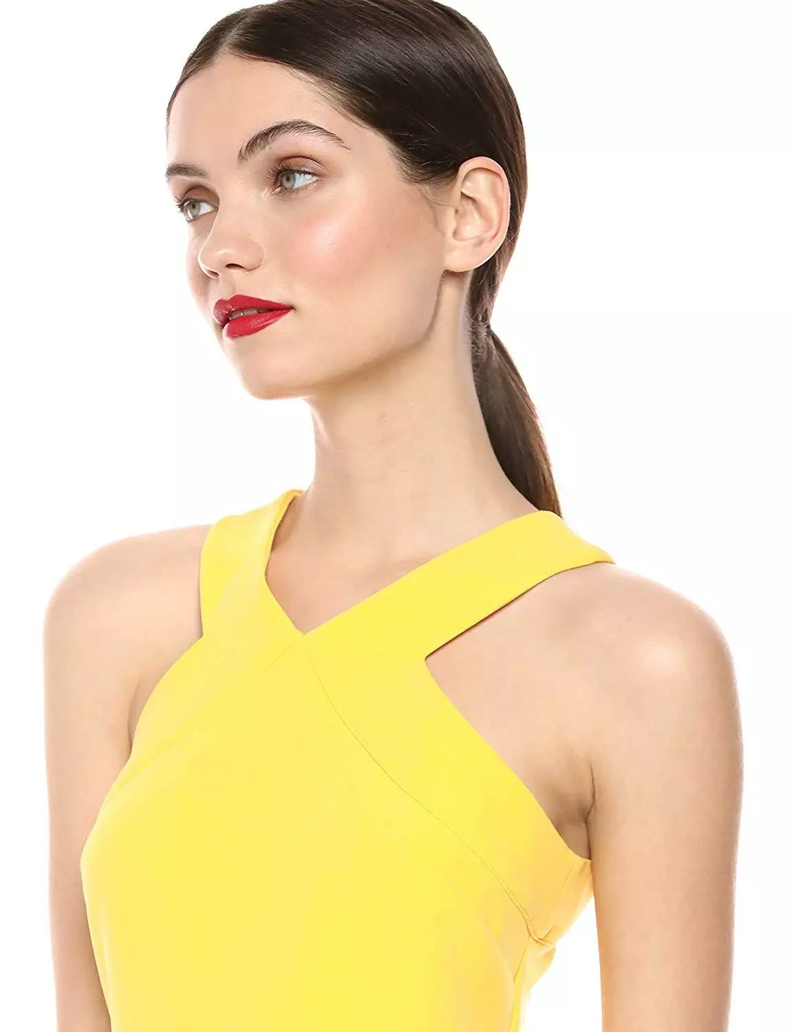 Show off your trendsetting style when you wear this stylish Laundry HP02W03 bodycon dress. This Solid Luxe Double Weave Dress fashions a cut-in shoulders and Halter strap V neckline designed in a flattering fitted silhouette. This Laundry creation will make you feel all radiant looking from the office to your date night!