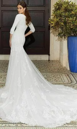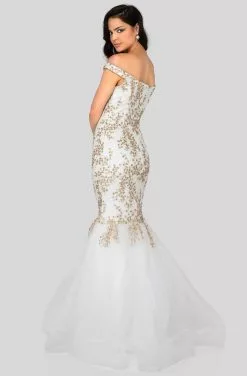 Everyone will be enthralled by this lovable Mac Duggal 10814 creation. A sleeveless bodice that highlights a plunging V-neckline makes this embellished dress look more adorable. Wide straps support this ensemble, leading to a V-shaped back with a center zipper closure. Revealing a skirt in full-length and parades in a trumpet silhouette and ends with a little train, this also shows an empire waist. Wow everyone in this sophisticated Mac Duggal 10814 creation. Model is wearing White color.