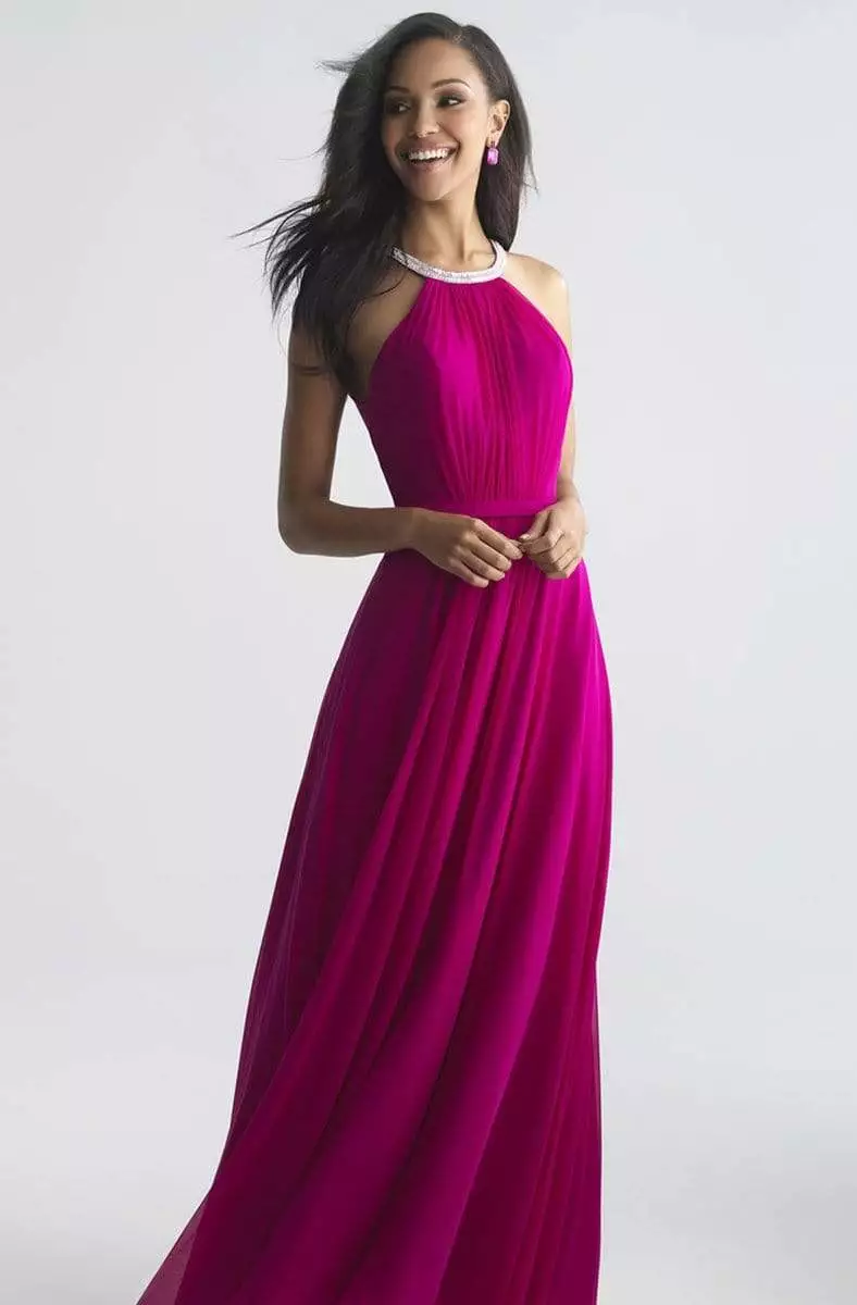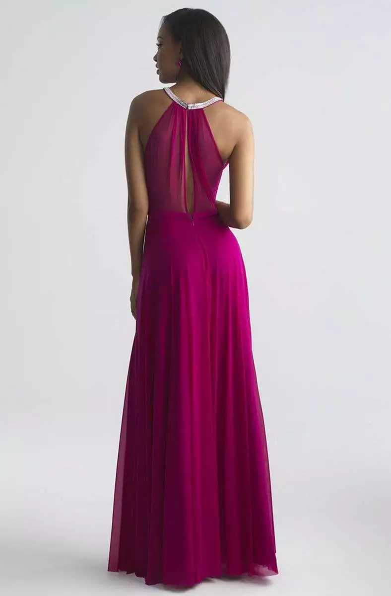 Turn heads in this Madison James 18-724 Prom Dress. This classy prom ensemble will best highlight those sexy arms and shoulders with its halter style sleeveless bodice and glistening strap around the neck. The draped chiffon skirt is pleated and tucked along the waistline and flutters to the full-length A-line silhouette hem. Let everyones eyes focus on you in this captivating evening gown from Madison James.