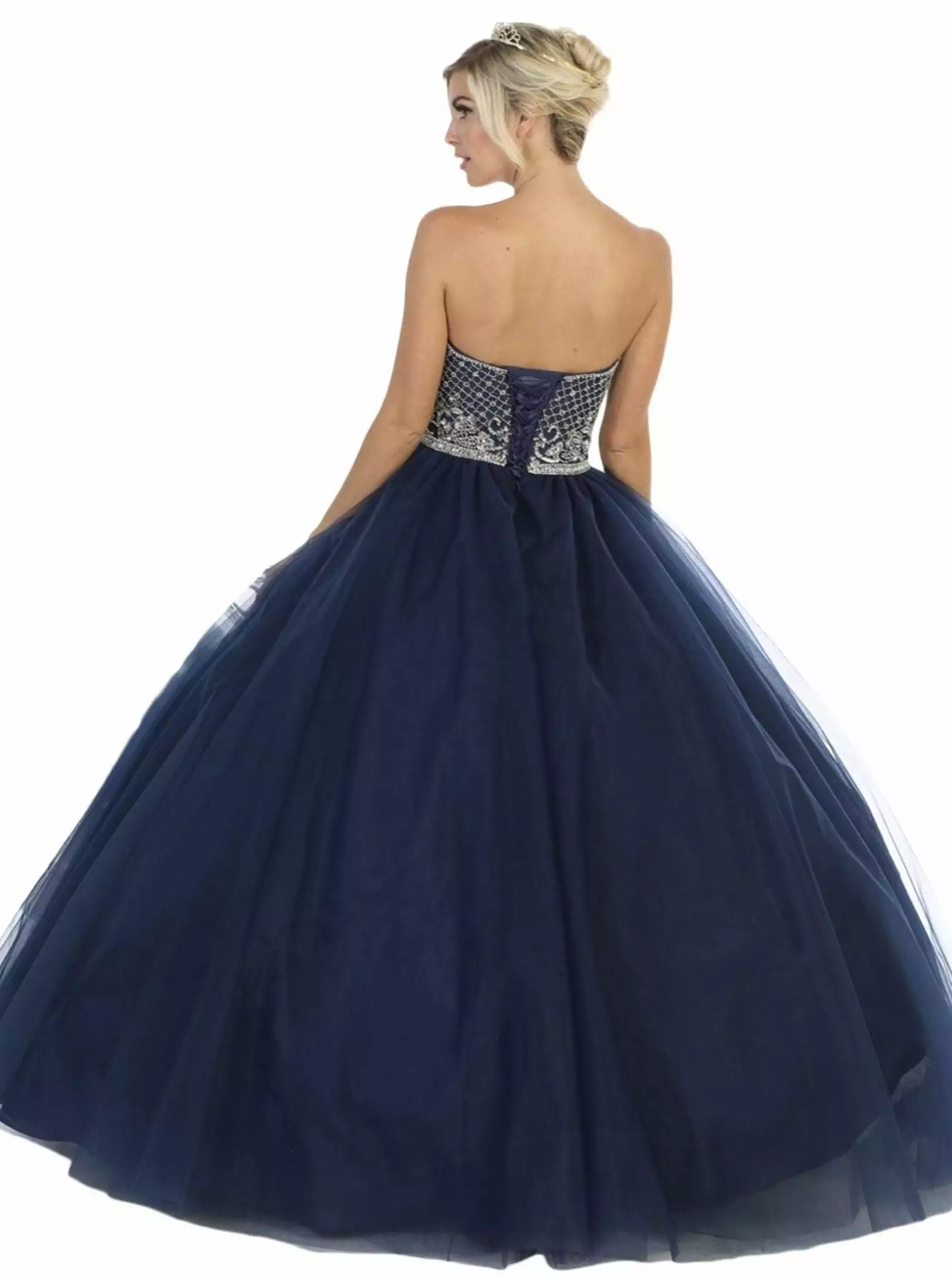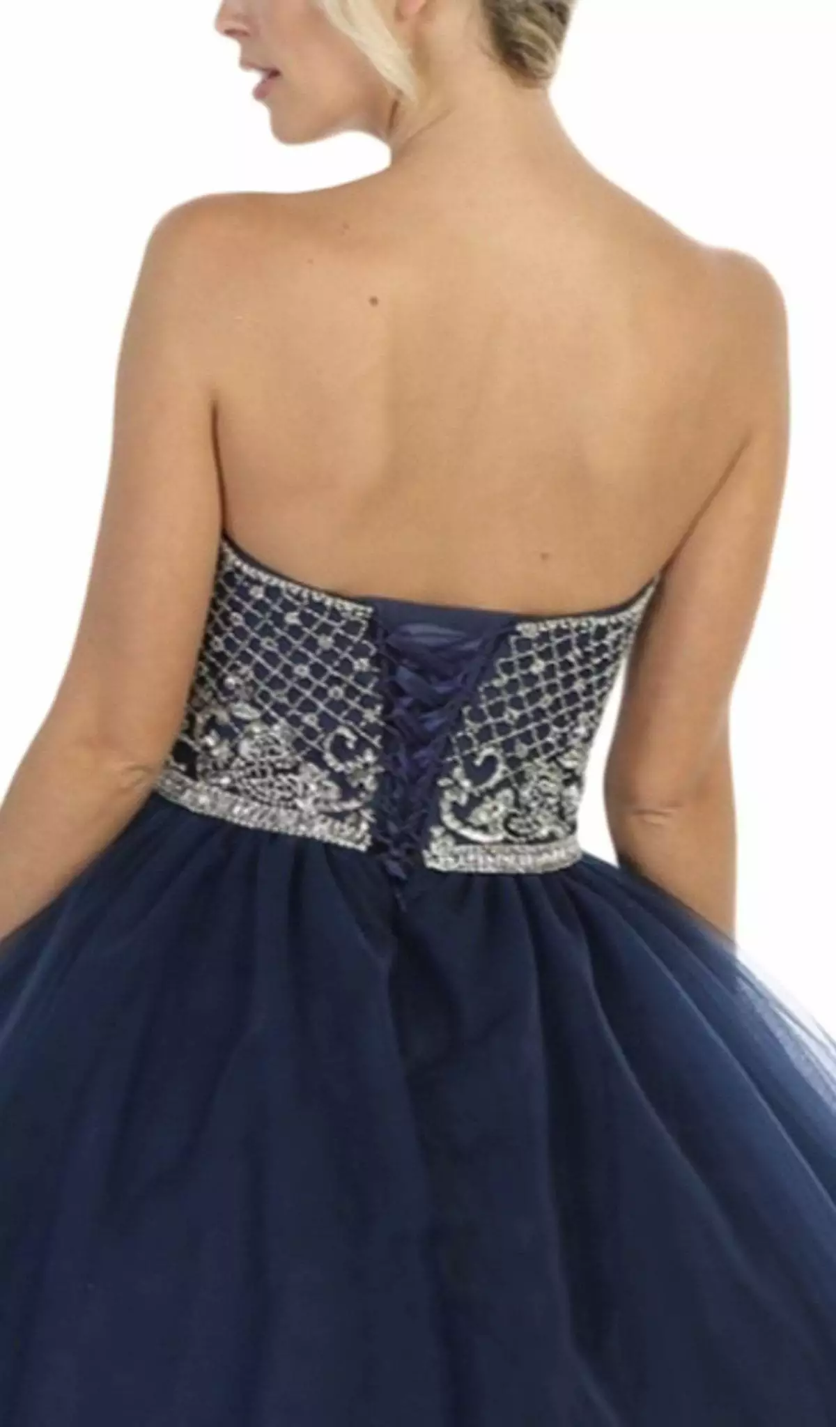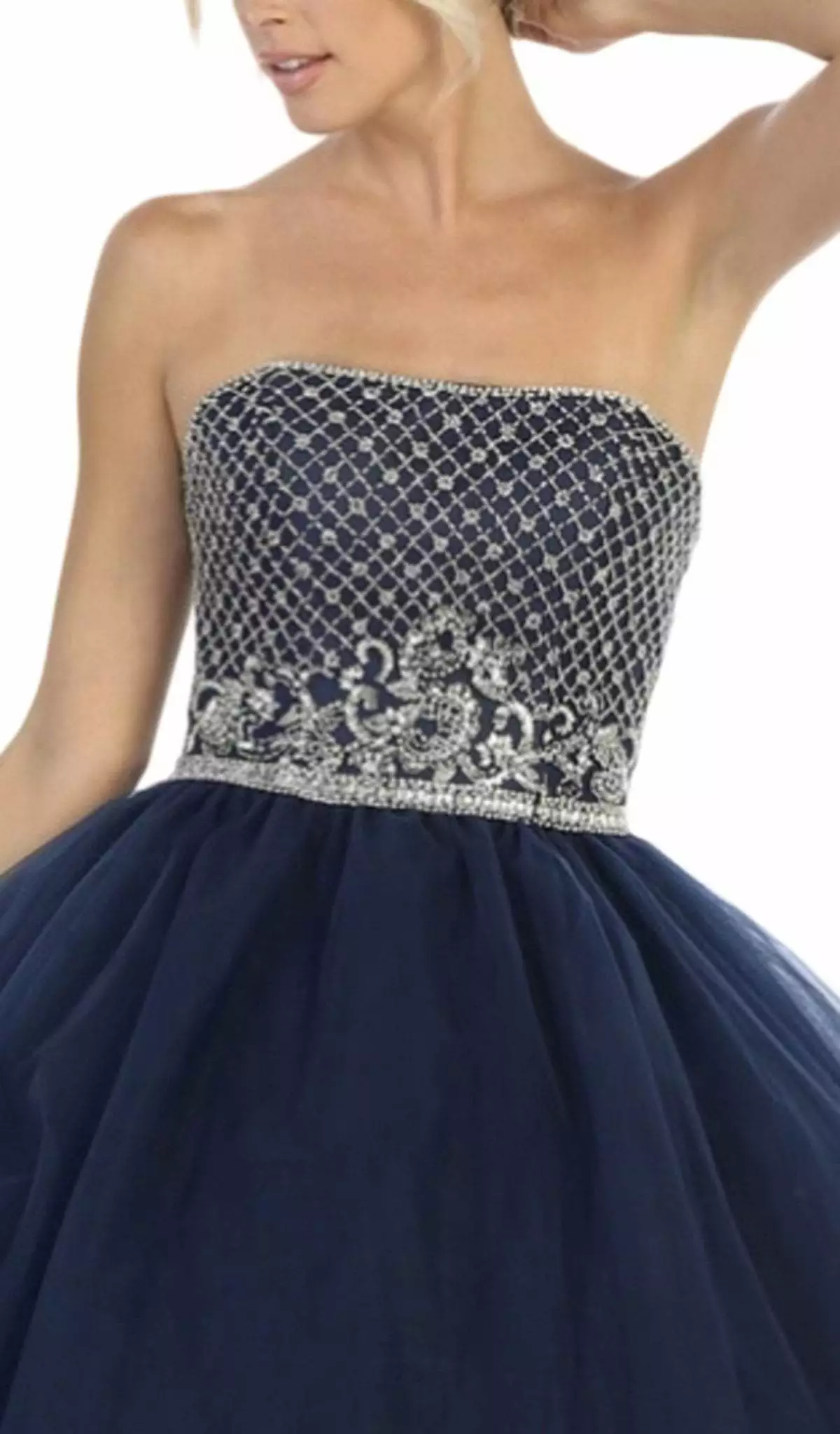 | Details: | Strapless, Fitted bodice, Embellishments, Ballgown skirt, Lace up back |