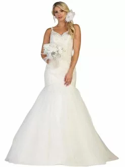 All eyes will be on you in this elegant gown by May Queen RQ7642. Delights in a sleeveless, V-neckline with shoulder straps. The fitted bodice is elegantly ornate with embroidery and reveals an open back. The dress has a back zipper closure while the skirt forms a defined mermaid silhouette with a dramatic sweep train finish. This fabulous design by May Queen brings a striking look meant to turn heads.
