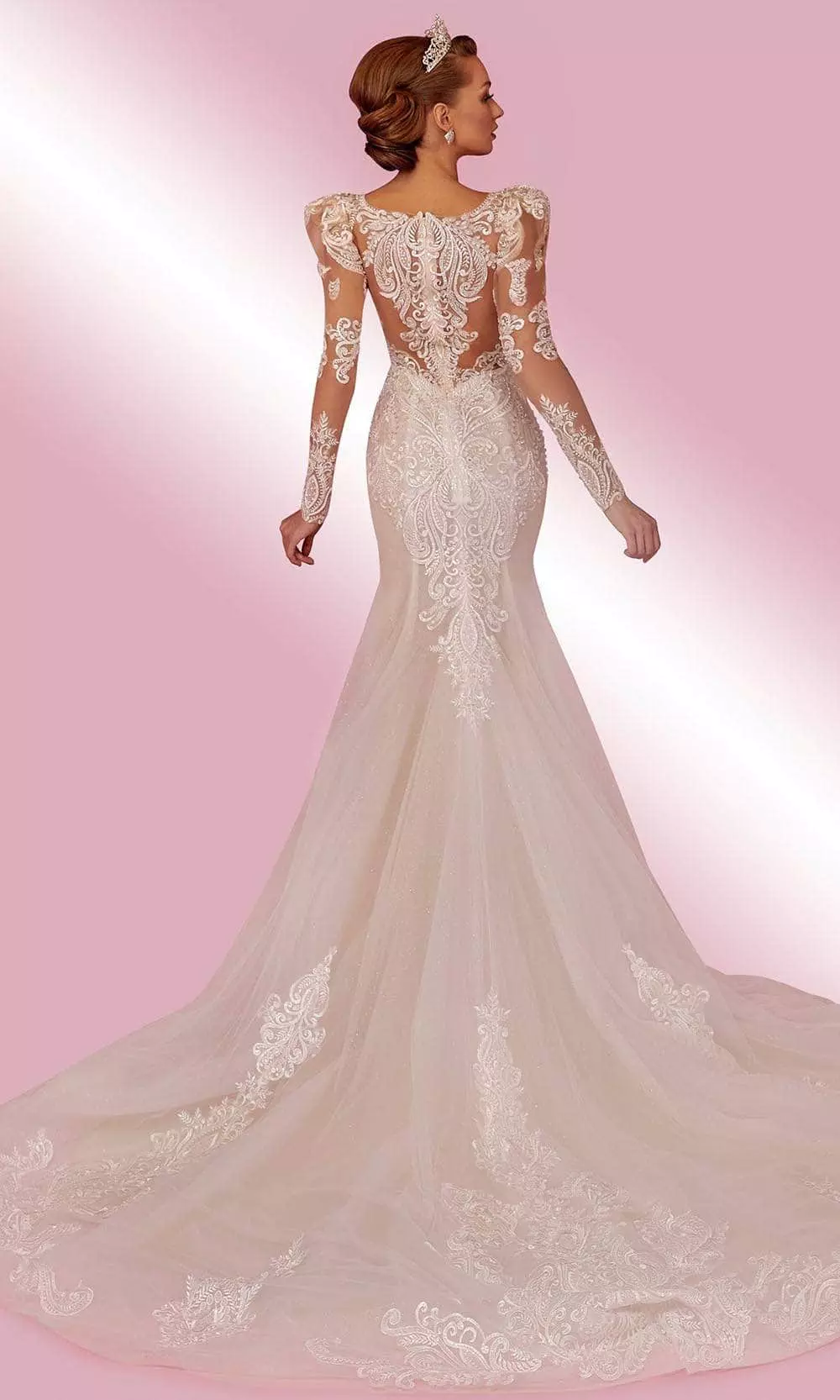 Get ready to draw everyone’s attention as you step into the room wearing this exquisite Lace and beaded embroidered dress. They will be fascinated by you wearing this sophisticated dress with a deep V-neckline, sheer puff sleeves, and stunning details at the back that represent your unique persona. In this MNM Couture masterpiece, you will appear sophisticated, classy, and mature, enticing everyone from all sides as you sparkle all night. Model is wearing Off White