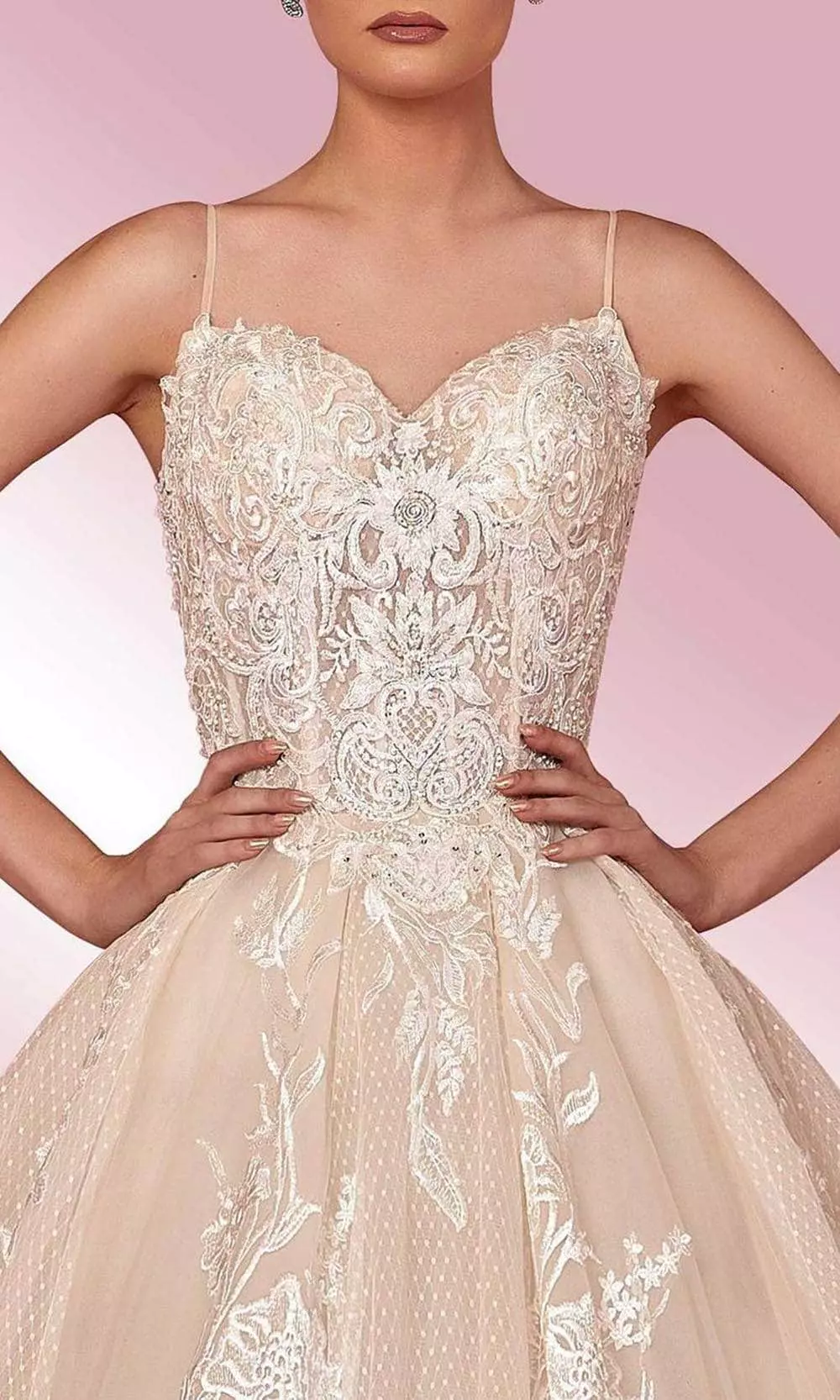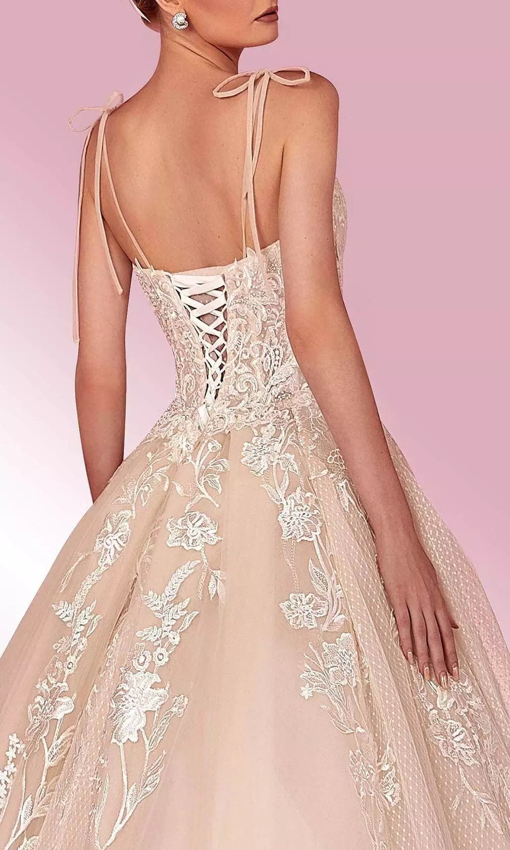 | Details: | Sweetheart neckline, Tie-up spaghetti strap, Lace and Beaded bodice, Lace-up back, A-Line |