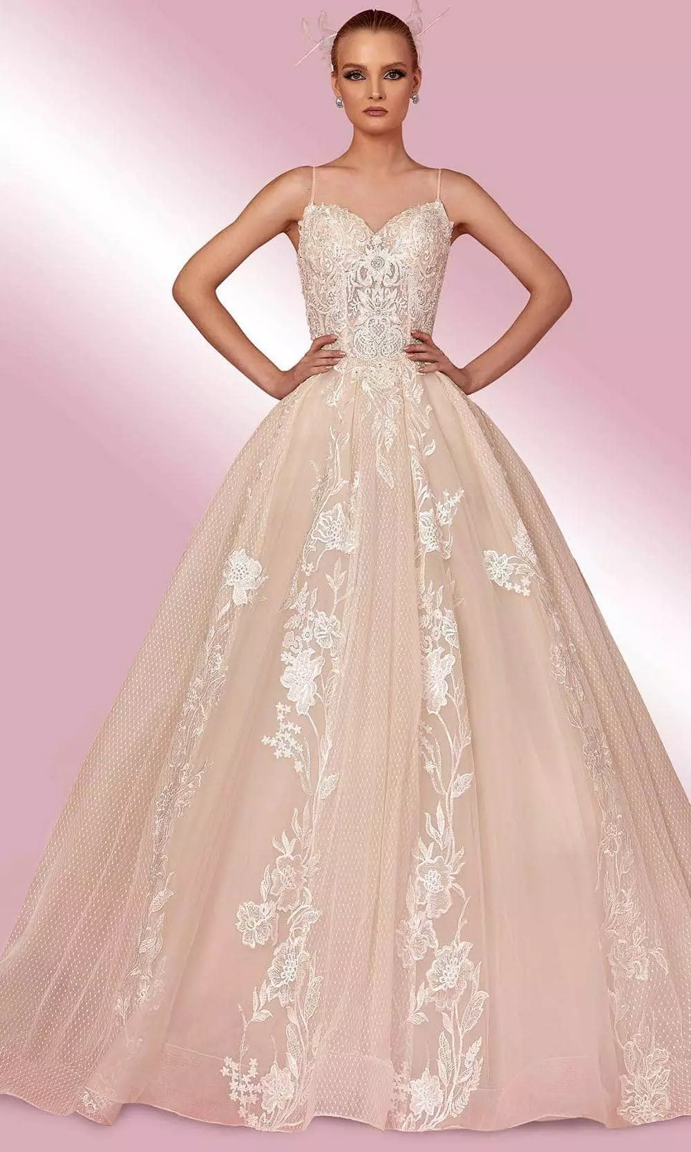 When you wear this stunning a-line dress that features a sweetheart neckline with tie-up spaghetti straps, and a lace and beaded bodice that will fulfill every fashionista’s fantasy, you will undoubtedly be the life of the party. The back of this magnificent a-line dress is laced up. This dress will surely give a sensational effect that will wow the crowd as you glide past them and make a lasting impression. Model is wearing Off White