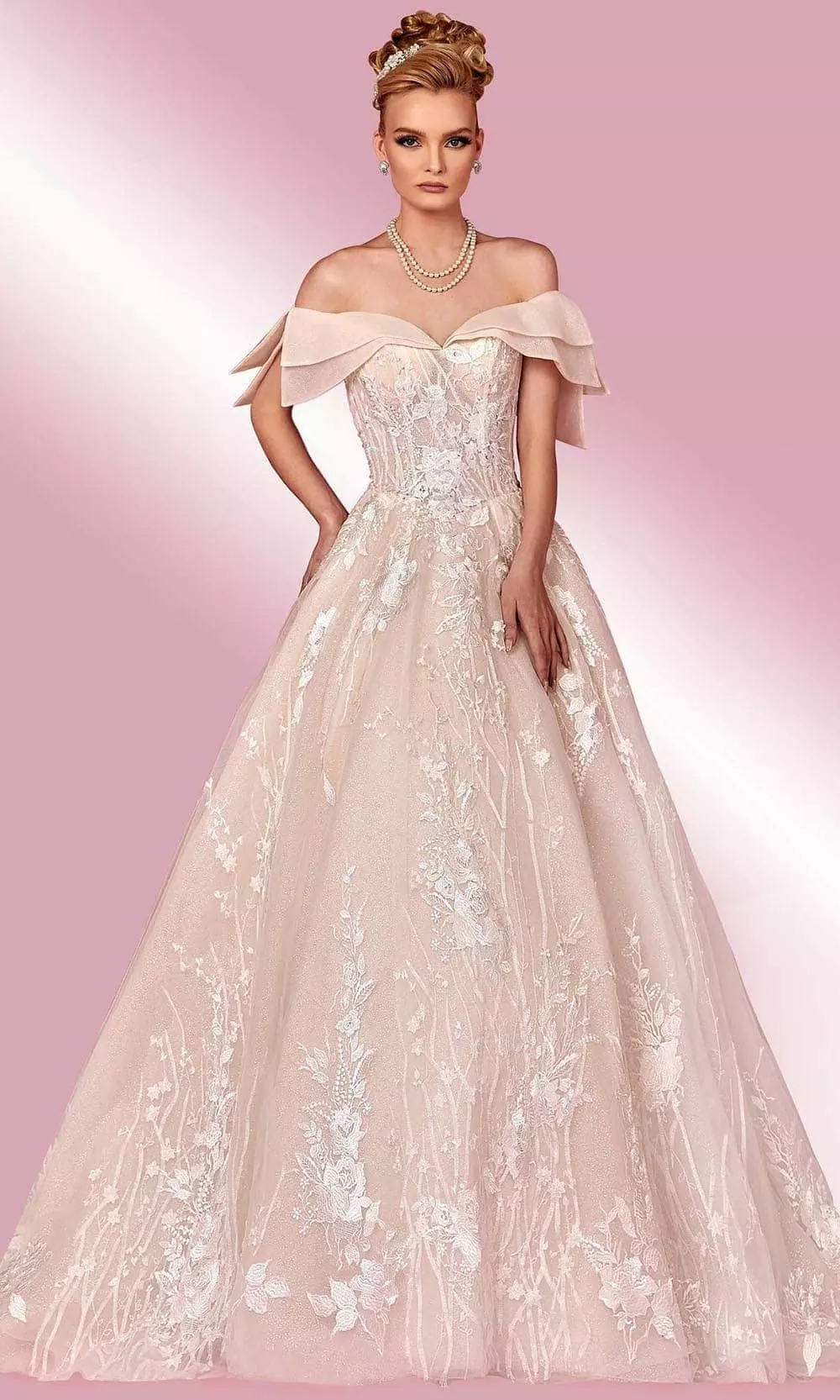 This a-line dress, be the stunning belle at your upcoming formal event! The lace-up back of this stunning off-shoulder dress stands out, as well as the unique draped details. It also features exquisite lace applique details that will make you appear beautiful and modest as you approach the room and go down the aisle. In this masterpiece by MNM Couture, transform into such an alluring vision that piques everyone’s curiosity. Model is wearing Off White