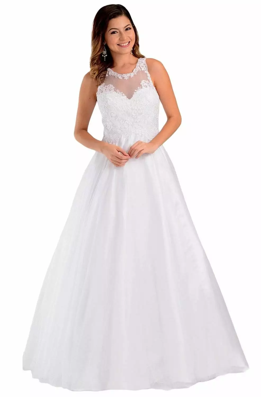 | Details: | Sleeveless, Embroidered bodice, A-line skirt, Tulle, Mesh top, Back keyhole, Back zipper |
