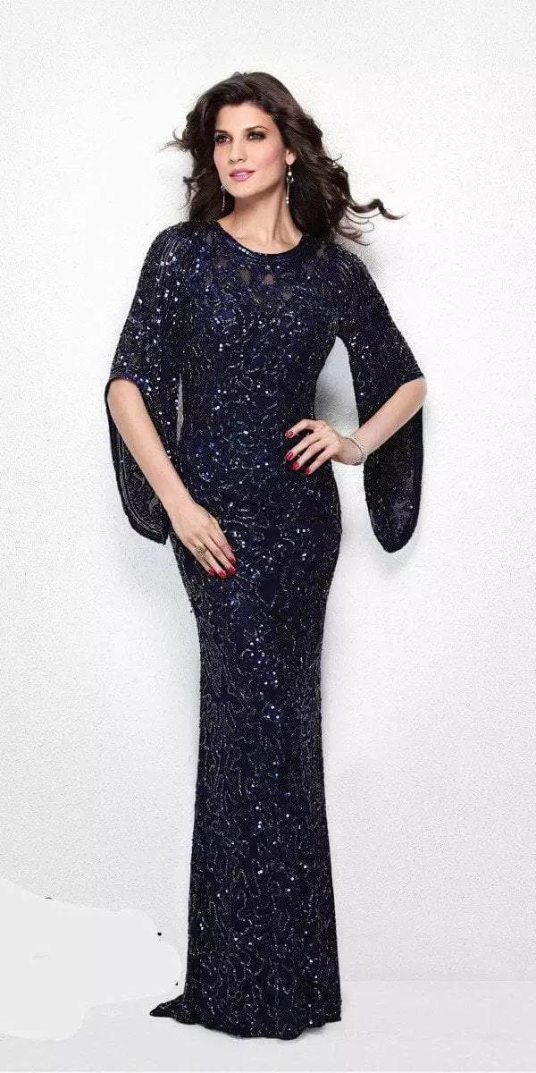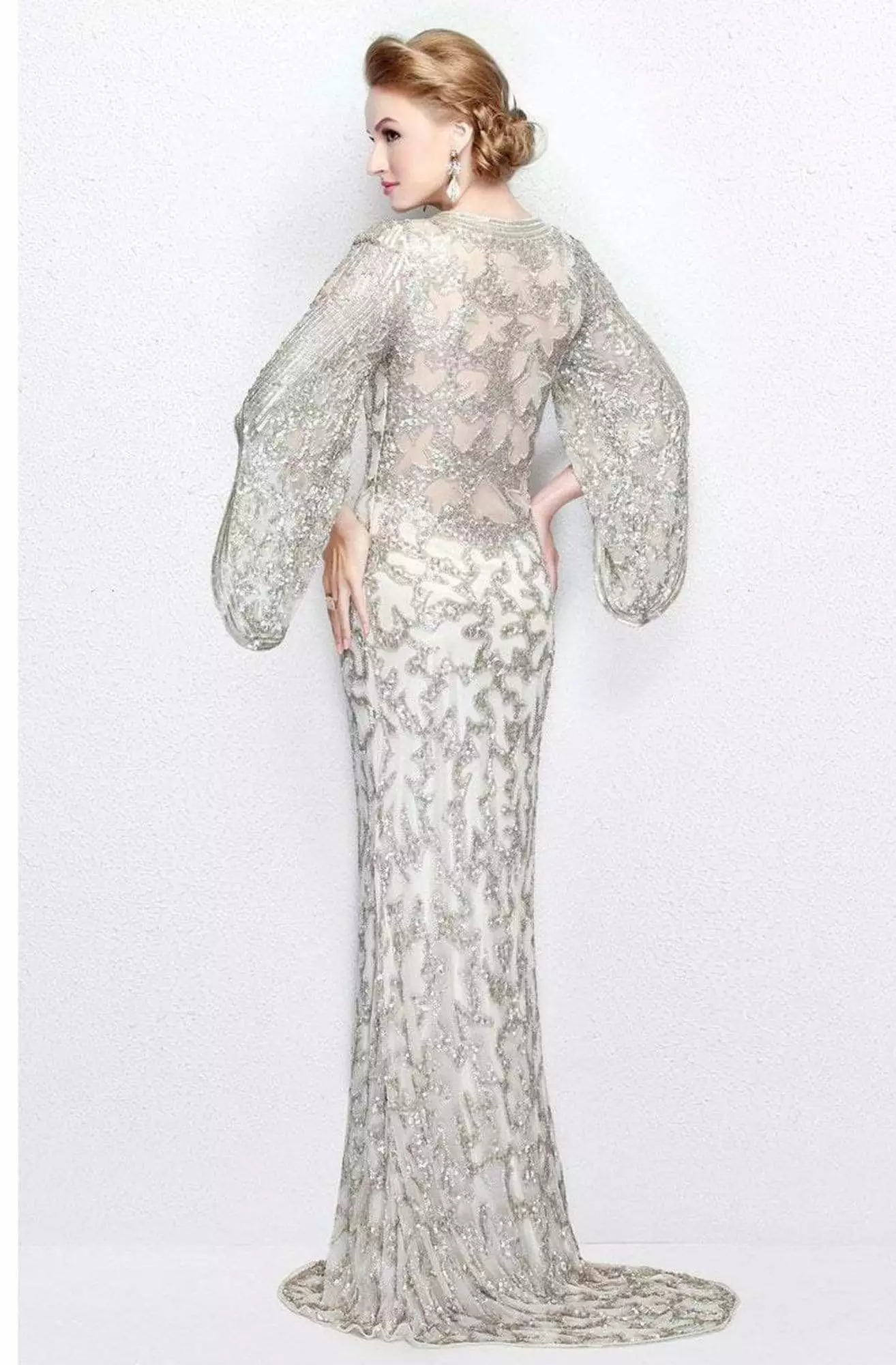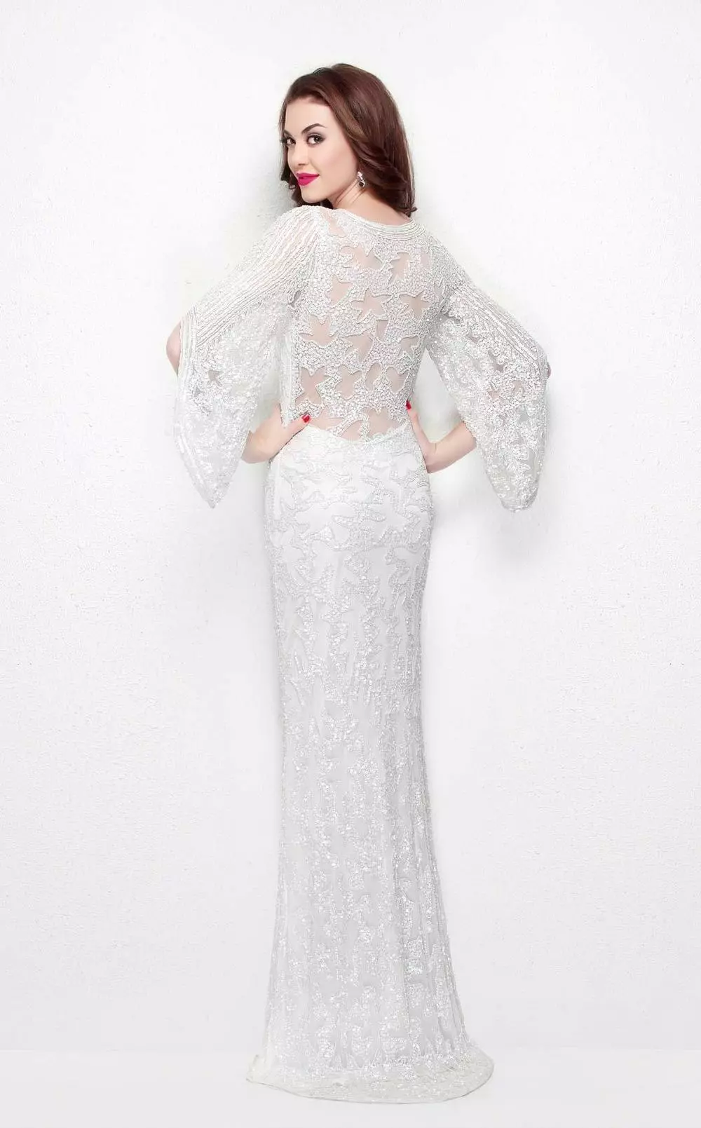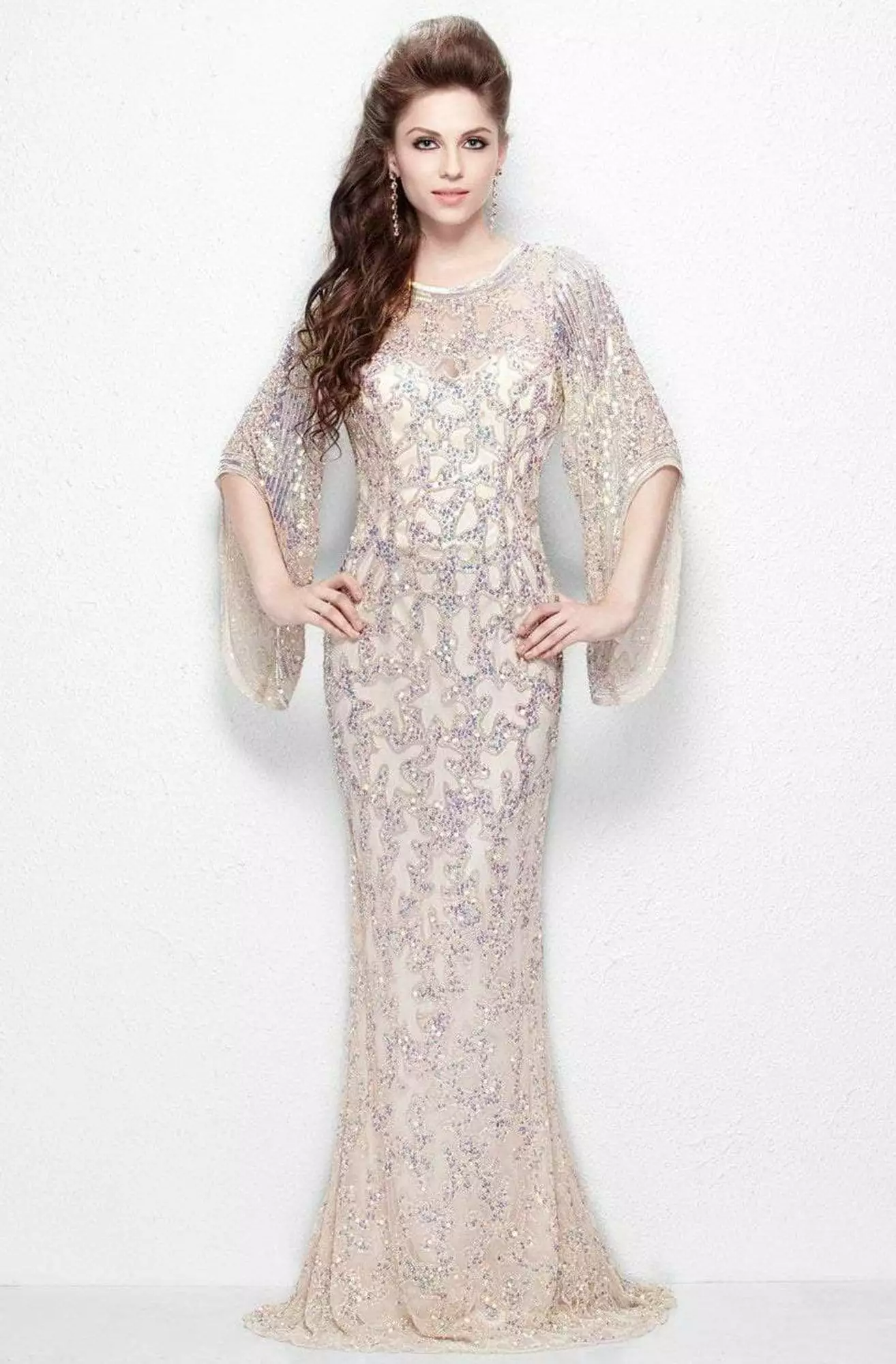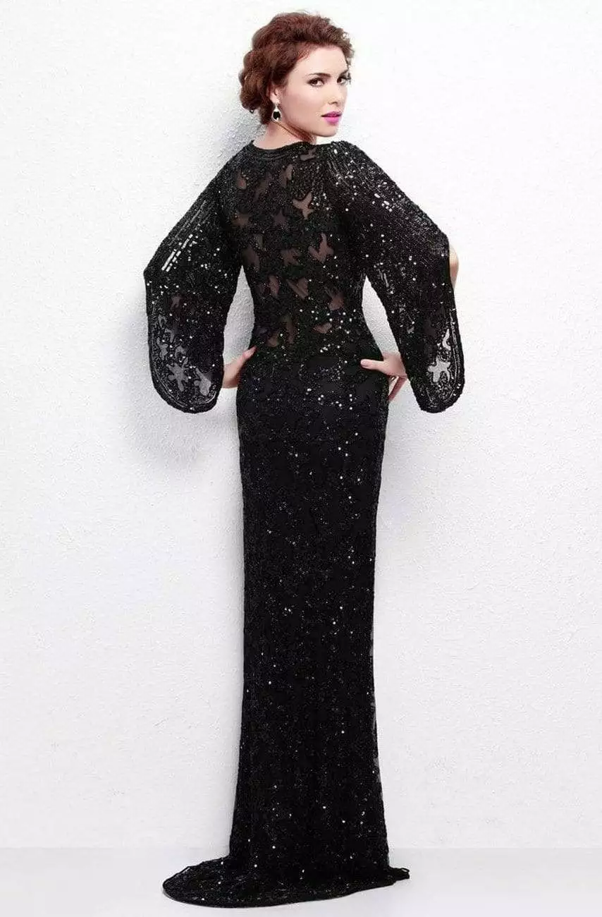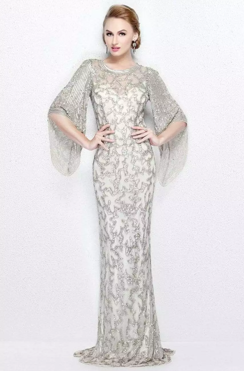 Achieve the next level of sophistication in this divinely designed gown by Primavera Couture 9713. The elegantly trimmed jewel neckline pulls up into flared elbow length sleeves graceful flows around to the sheer high back design. Sparkling sequin embellishments are perfectly placed all over this fabulous gown in an abstract pattern. This absolutely stunning gown features a fitted bodice that flatters down to the long floor length. Leave everyone in awe by appearing in this grand grown designed by Primavera Couture!