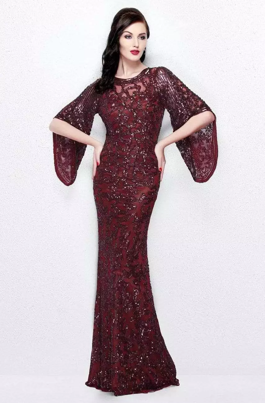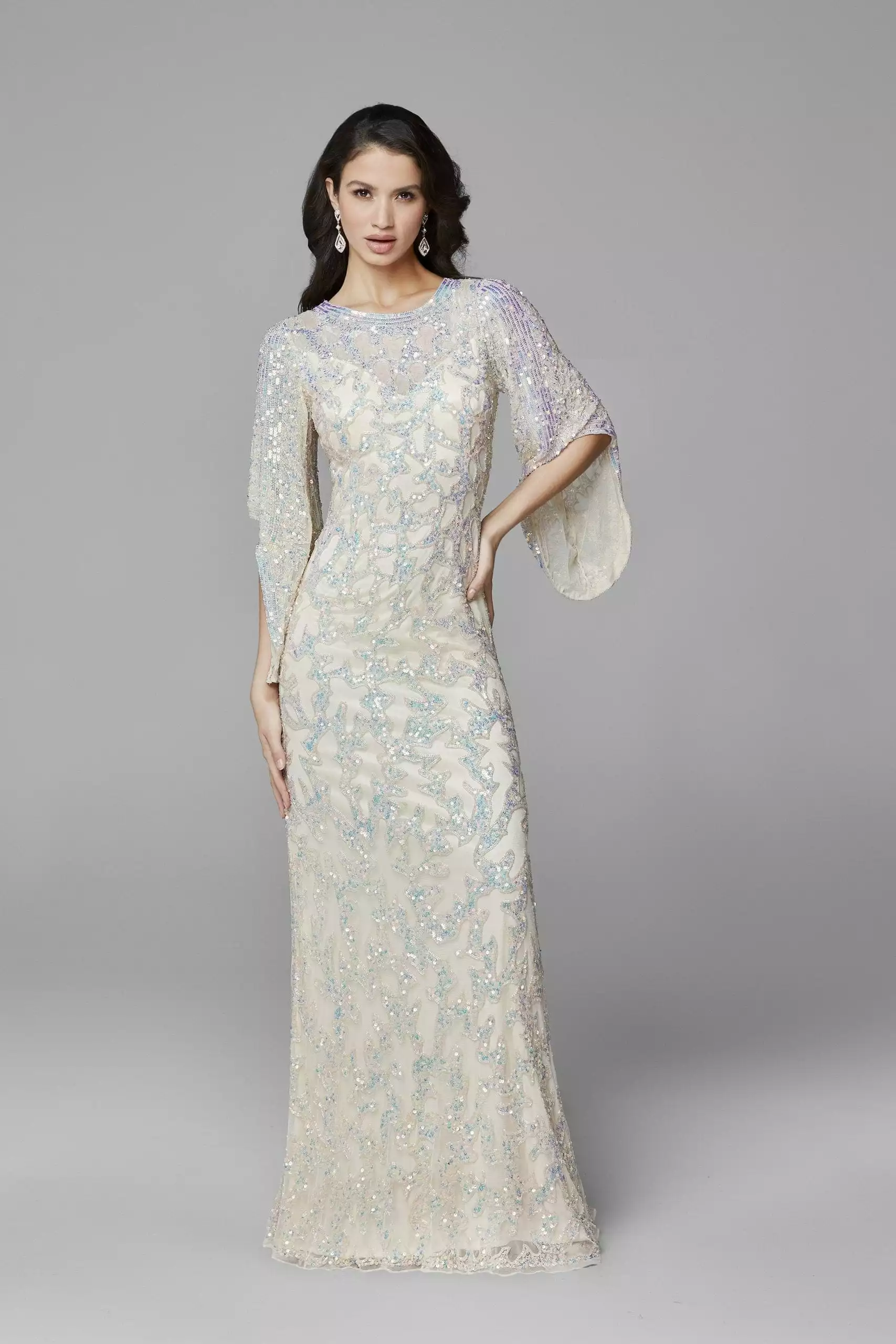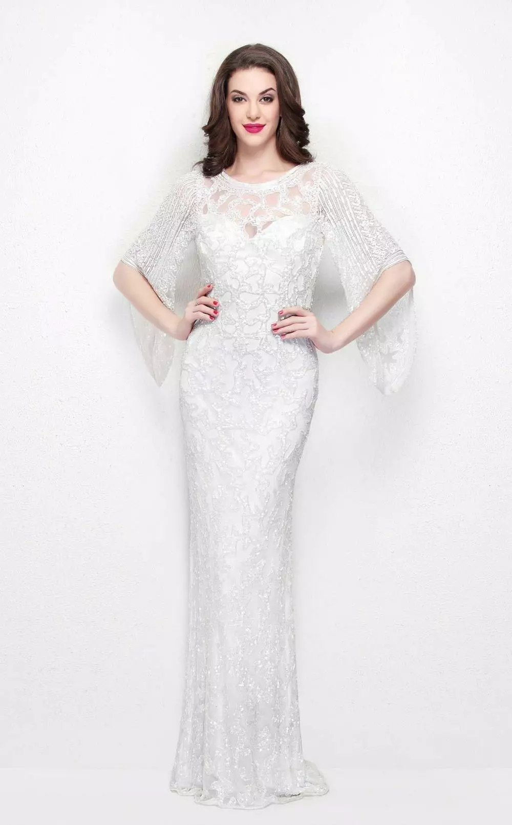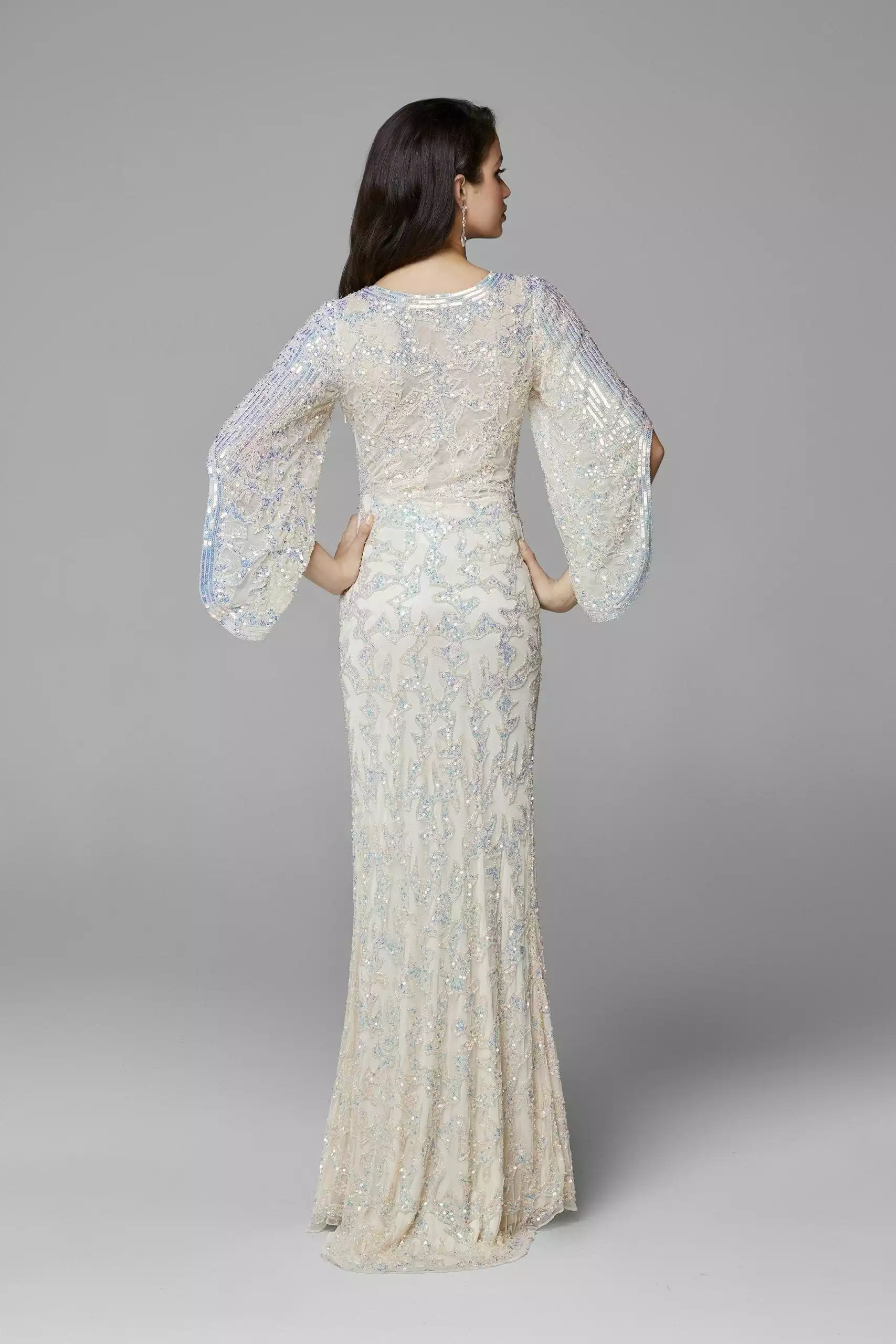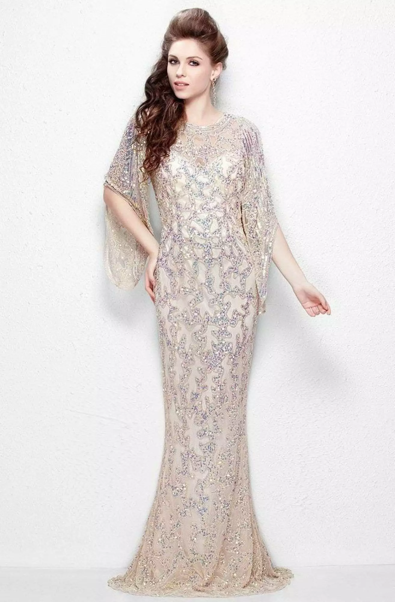 Achieve the next level of sophistication in this divinely designed gown by Primavera Couture 9713. The elegantly trimmed jewel neckline pulls up into flared elbow length sleeves graceful flows around to the sheer high back design. Sparkling sequin embellishments are perfectly placed all over this fabulous gown in an abstract pattern. This absolutely stunning gown features a fitted bodice that flatters down to the long floor length. Leave everyone in awe by appearing in this grand grown designed by Primavera Couture!