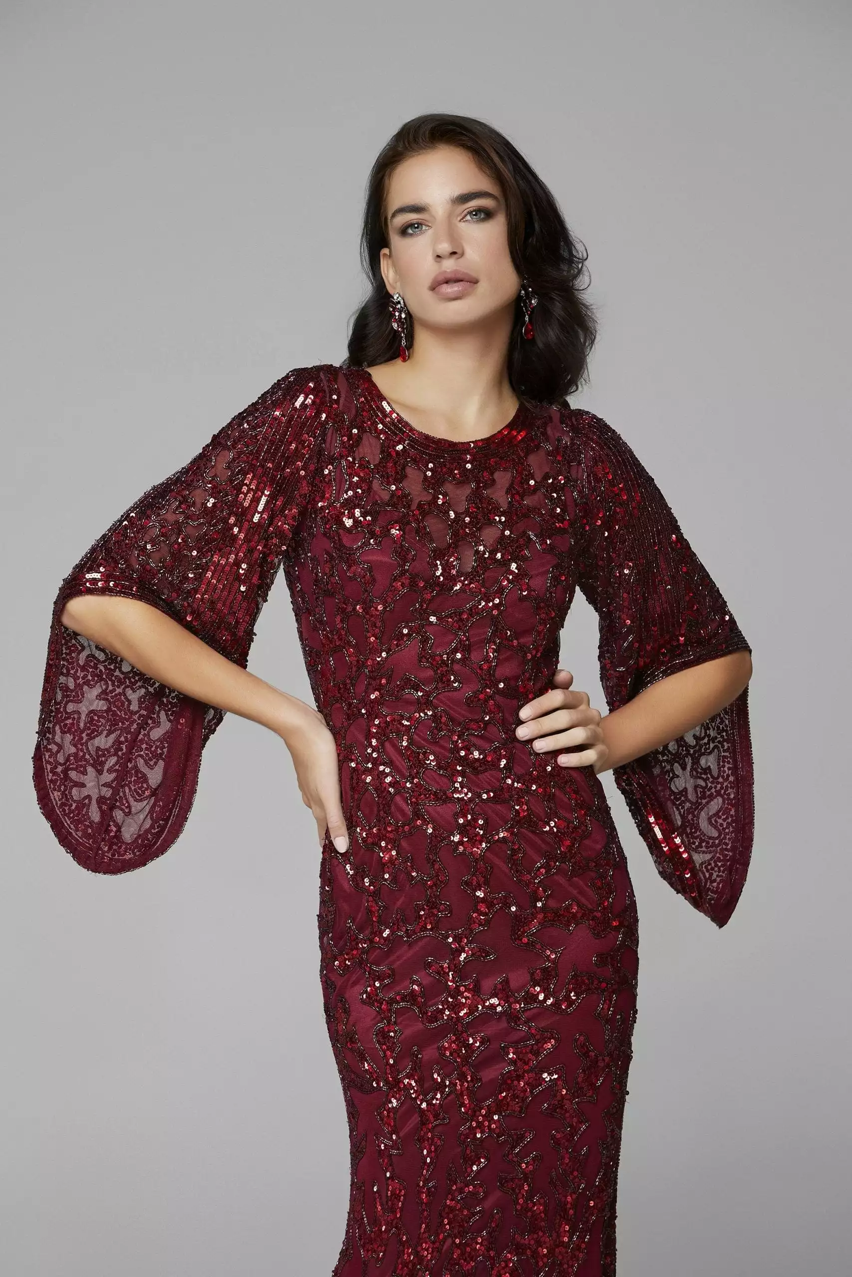 | Details: | Beading / Crystals, Sequins, Beaded, Fully Beaded, Fitted, Mesh , Sheer, Trumpet Sleeve, Floor Length with Train, Side Zipper |