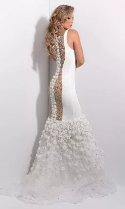 Jasz Couture – 7202 Plunging Neck Floral Applique Mermaid Gown