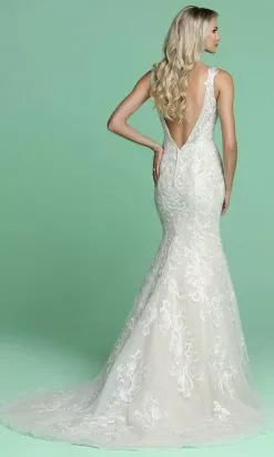 Da Vinci Bridal – 50592 Lace Plunging V Neck Tulle Mermaid Gown
