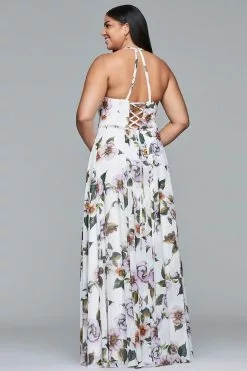 Faviana – S10203 Lace Applique Illusion Halter Evening Dress