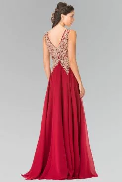 Dancing Queen – Sheer Floral A Line Long Gown 2121 – 1 Pc Champagne In Size S Available