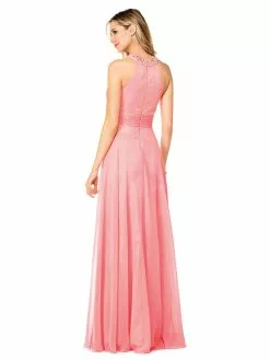 Colors Dress Crystal High Halter Shirred Chiffon Gown G183 – 1 Pc Blush In Size 16 Available