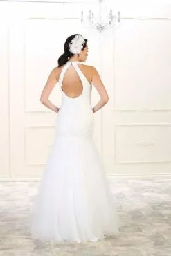 May Queen Bridal – RQ7505 Embroidered High Halter Mermaid Dress